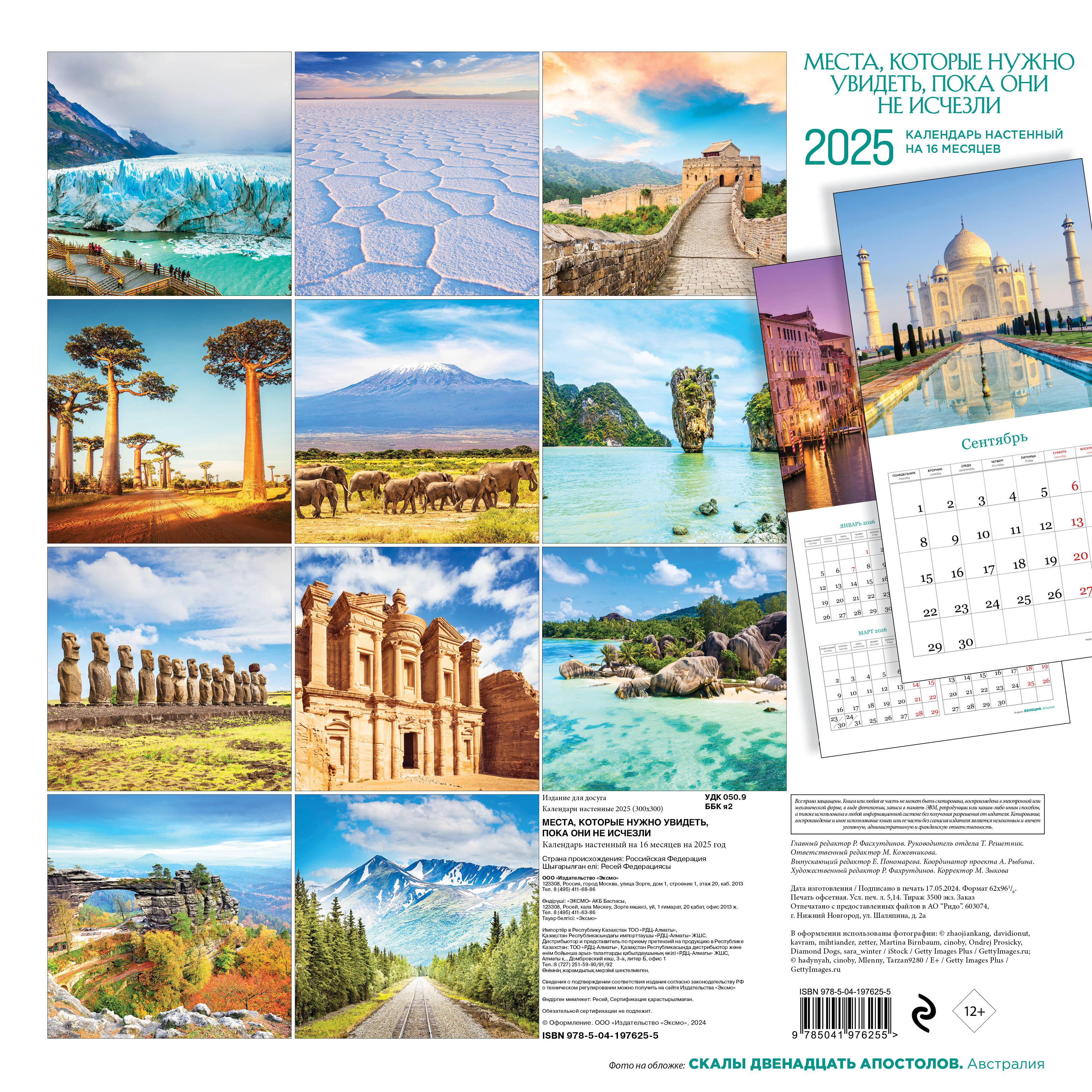 Аннотация: Места, которые нужно увидеть, пока они не исчезли. Календарь настенный на 16 месяцев на 2025 год (300х300 мм)