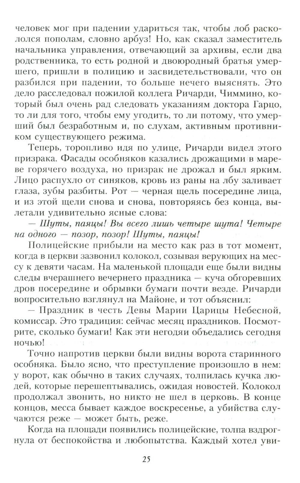 Этим жарким летом комиссар полиции Неаполя Луиджи Ричарди, сыщик, который видит призраков людей, умерших насильственной смертью, и слышит их последние мысли, снова получил трудное задание. Ему предстоит расследовать убийство герцогини ди Кампарино, таинственной женщины, известной своей бурной жизнью. В ночь, когда на площади перед особняком семьи ди Кампарино жители квартала шумно отмечали праздник, герцогиню нашли убитой в своей прихожей. Кто-то задушил ее, потом выстрелил ей в голову из пистолета. Кто мог это сделать? Подозреваемых несколько, и улики противоречат одна другой. Комиссар будет блуждать неверными и порой опасными путями в поисках истины, а развязка окажется совершенно неожиданной.