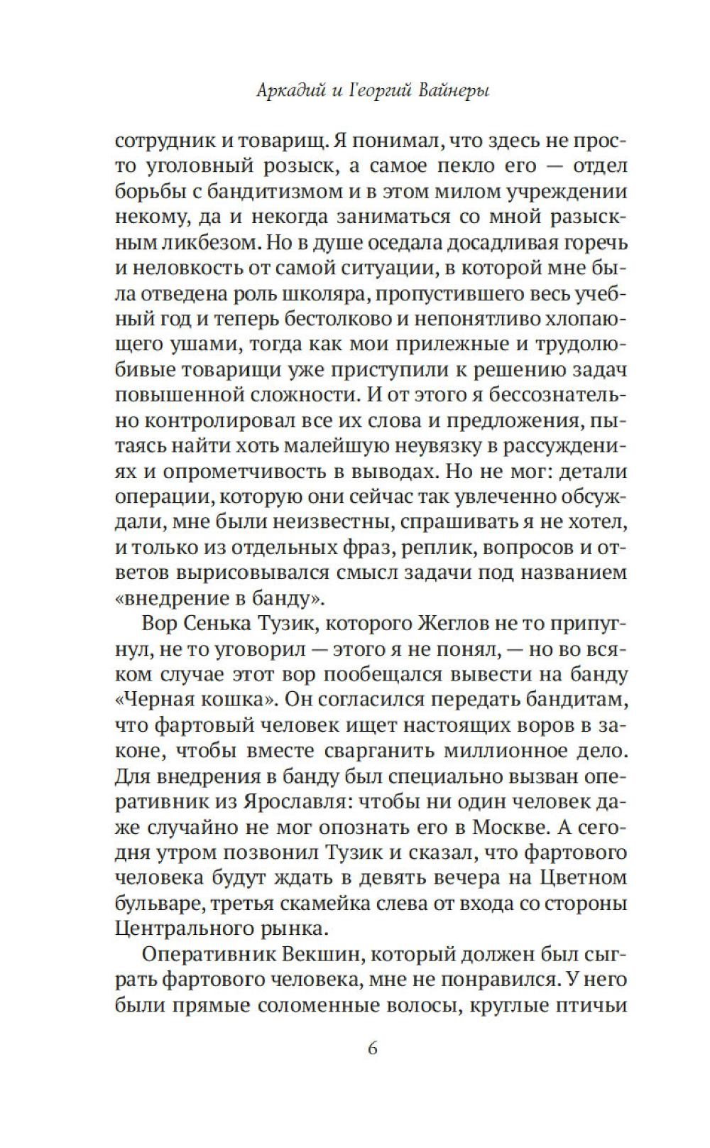Культовый роман братьев Вайнеров в особом представлении не нуждается. Книга увидела свет в 1975 году в журнальной публикации, а год спустя вышла отдельным изданием под названием «Эра милосердия». Роман стал событием в литературной жизни страны, покорив миллионы читателей, а снятый по нему телефильм обрел всенародную любовь. А сколько легенд ходило о банде «Черная кошка», которая стала собирательным образом реально существовавших московских преступных группировок! По словам Владимира Высоцкого, воплотившего на экране образ капитана Жеглова, эта книга не просто детектив, а настоящая литература со своей драматургией: «Там две психологии сталкиваются - любопытно, и оторваться нельзя». Тема этического противостояния Жеглова и Шарапова, таких непохожих друг на друга напарников-соперников, актуальна и сегодня. А вечная мечта человечества - эра милосердия, которой посвящен роман, по-прежнему волнует читателей.| Издательство | Азбука |