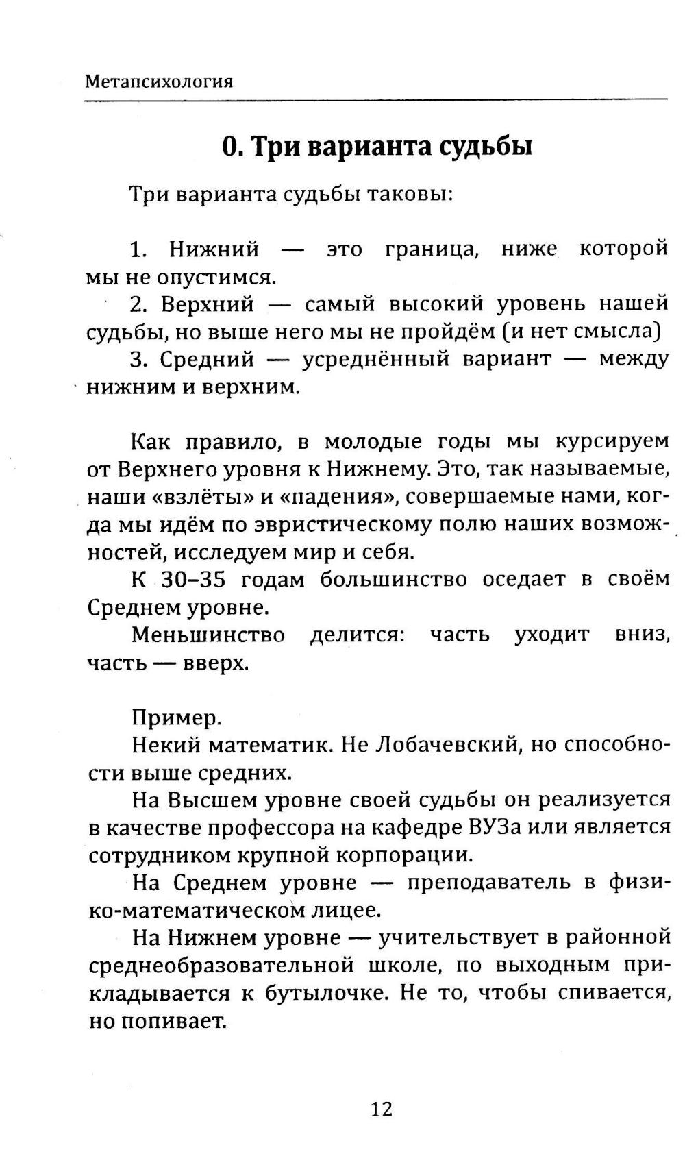 Книга представляет собой соединение двух подходов: с одной стороны, это научно-исследовательская инновационная работа, с другой - практическое руководство, можно сказать, некий учебник по изменению своей жизни и судьбы. В данном труде читатель ознакомится с новой версией таких понятий как Время, Реинкарнация, Фатум, Проекции, а также с введёнными автором, новыми понятиями - Три Уровня Судьбы, Глобальное Эмоциональное Поле, Психосемантическая Игровая Вселенная... Представлена оригинальная трактовка воображения как активности внутреннего света и дана соответствующая практика. Осваивая упражнения (Инструкции для Внутреннего Игрока), читатель сможет овладеть навыками Мастера Экзистенциальной Игры. Книга окажется полезной для психотерапевтов, философов и самого широкого круга людей, интересующихся темами практической самореализации и повышения своей эффективности.| Издательство | Изд. Книга |