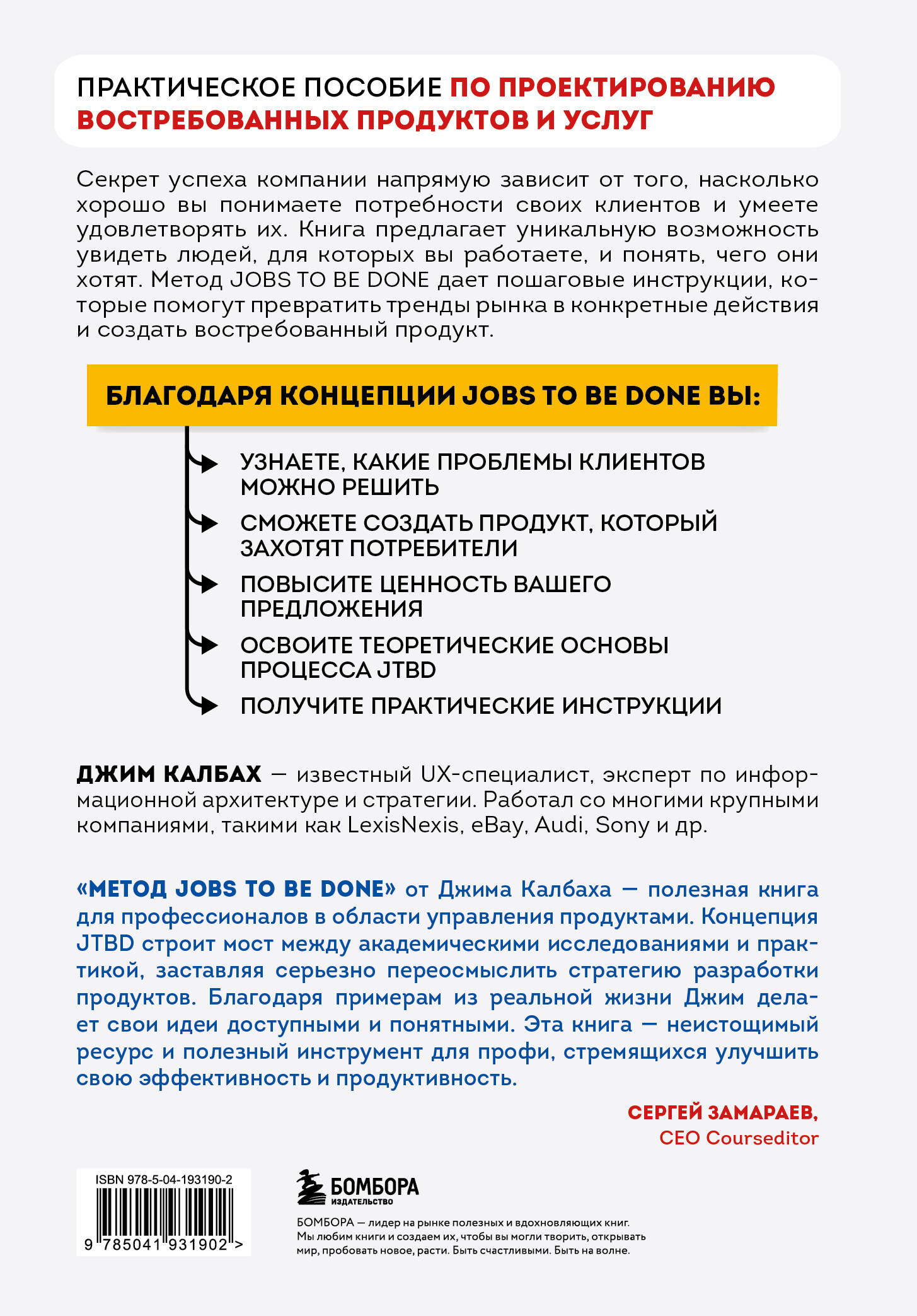 Аннотация: Метод Jobs to Be Done. Проектирование клиентоориентированного продукта
