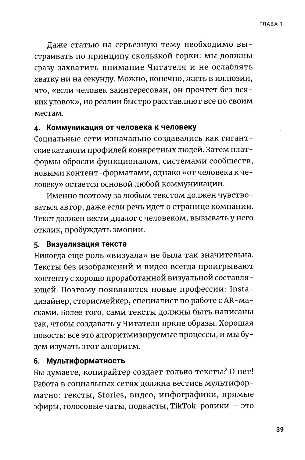 Каждую минуту больше трех миллиардов людей делятся в соцсетях сотнями миллионов видео, сообщений, твитов, аудиозаписей, фотографий и картинок. Когда контента так много, конкуренция между брендами за внимание пользователей становится все сильнее, и успех маркетинговой кампании зависит от того, как быстро вы успеваете адаптироваться к изменениям и предсказывать тренды. Чтобы победить в битве за внимание, нужно научиться увлекательно рассказывать истории и вести читателя от первого взгляда на ваш контент к целевому действию, считает Дамир Халилов, один из ведущих специалистов по SMM в России. В своей книге он рассказывает о методе скользкой горки и других универсальных техниках сторителлинга, которые используют в своей практике «звездные» сценаристы, известные писатели и опытные рекламщики. Эта книга научит создавать захватывающий, вызывающий доверие контент для социальных сетей, который запомнится аудитории и широко разойдется благодаря сарафанному радио, подскажет, как получать максимальную отдачу от продвижения и увеличивать монетизацию.
