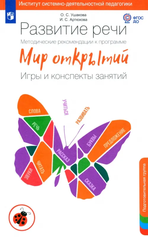Издание выходит в комплекте с рабочей тетрадью по развитию речи для детей подготовительной группы детского сада (6-7 лет). Данный комплект реализует комплексную образовательную программу дошкольного образования "Мир открытий" (под ред. Петерсон Л.Г., Лыковой И.А.) в образовательной области по речевому развитию. Издание адресовано методистам и педагогам детского сада для проведения систематических развивающих занятий. Программа и методика занятий по развитию речи детей дошкольного возраста О.С. Ушаковой апробировались в течение десятилетий на экспериментальных площадках во многих регионах России. Для программы "Мир открытий" содержание методики существенно обновлено, учитывает современные реалии развития языка и социальные изменения. Преимуществом издания являются: наличие программно-методических основ; календарно-тематическое планирование занятий; четкая постановка целей каждого занятия; подробные конспекты (36 занятий). Занятия нацелены на комплексное речевое развитие ребенка.