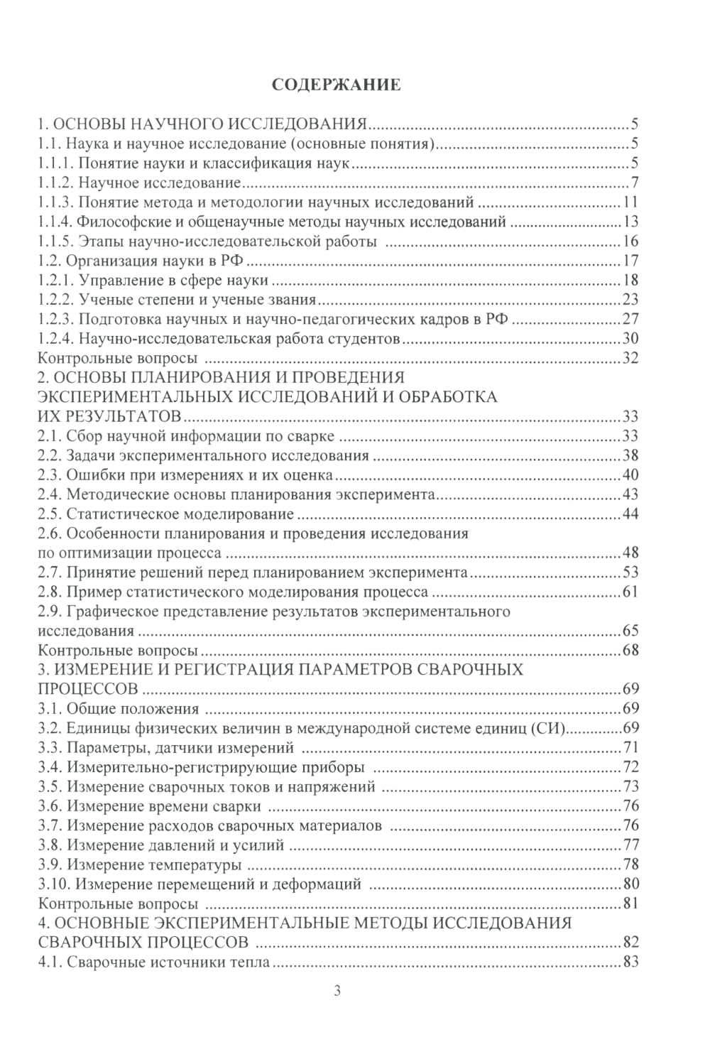 Рассмотрена методика исследования, включающая планирование и проведение эксперимента, математическую обработку и графическое представление результатов. Описаны методы измерения параметров сварочных процессов, сварных соединений и их регистрации. Представлено описание современных образцов измерительно-регистрирующей аппаратуры и датчиков, применяемых в сварочном производстве. Для студентов специальности 15.03.01 и 15.04.01 «Машиностроение», профиль «Оборудование и технология сварочного производства». Может быть использовано при выполнении исследовательских курсовых, выпускных квалификационных и магистерских диссертаций, а также быть полезным для специалистов, занимающихся созданием и анализом различных конструкционных и сварочных материалов, металловедов; инженерно-технических работников, связанных с исследованием процессов, происходящих при сварке, разработкой технологии сварки и оборудования в различных областях техники.