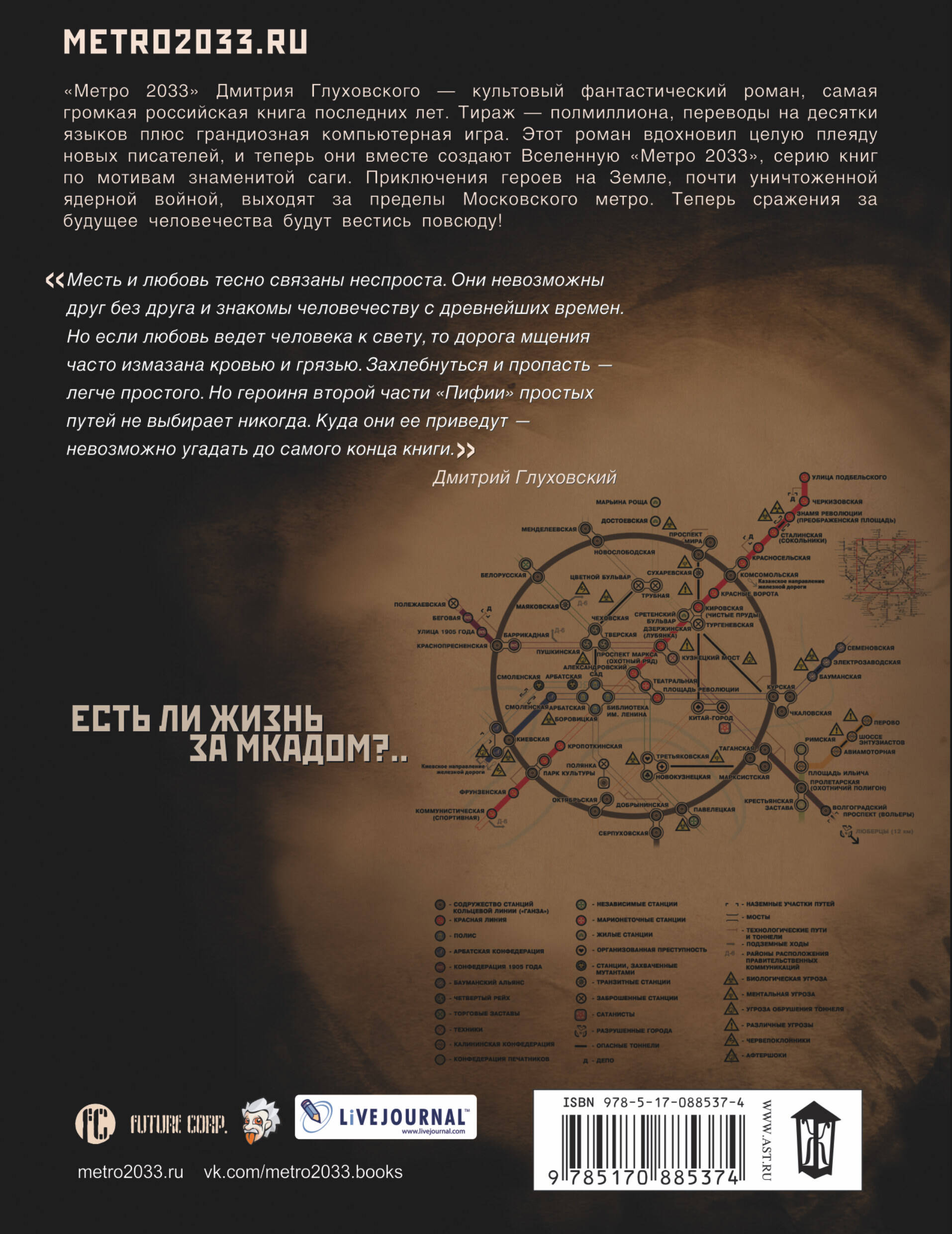 "Метро 2033" - Дмитрия Глуховского - культовый фантастический роман, самая обсуждаемая российская книга последних лет. Тираж - полмиллиона, переводы на десятки языков плюс грандиозная компьютерная игра! Эта постапокалиптическая история вдохновила целую плеяду современных писателей, и теперь они вместе создают Вселенную "Метро 2033", серию книг по мотивам знаменитого романа. Герои этих новых историй наконец-то выйдут за пределы Московского метро. Их приключения на поверхности на Земле, почти уничтоженной ядерной войной, превосходят все ожидания. Теперь борьба за выживание человечества будет вестись повсюду! Что делать женщине, когда больше не хочется жить? Когда единственную дочь убили у нее на глазах. Когда во всем метро не осталось ни одного близкого человека. Когда тело отравлено смертельным ядом и лучевой болезнью, а в душе - только отчаяние и мрак. Что остается той, которую еще недавно считали профессиональной шпионкой, безжалостной охотницей за людьми и жестокой наемницей по прозвищу Гончая? Только отомстить убийцам дочери! Куда приведет ее неукротимая жажда мести? Превратит в беспощадное чудовище, подобное Пожирателю рухнувшего мира, или она найдет в себе силы противостоять Злу и откроет свое истинное предназначение?| Издательство | ИЗДАТЕЛЬСТВО "АСТ" |