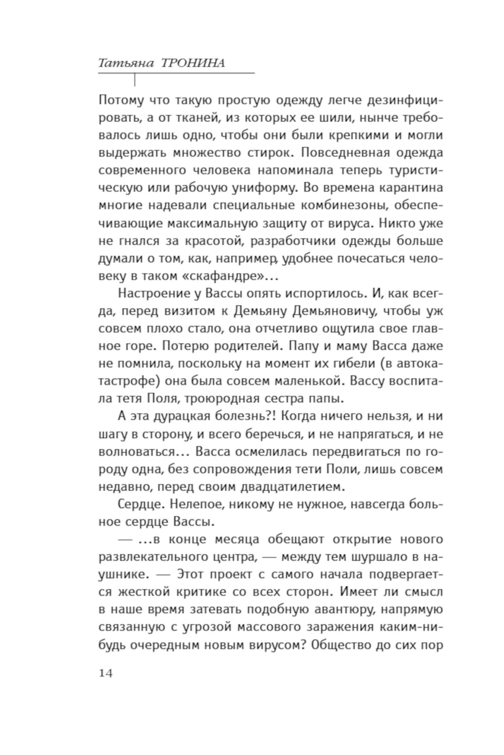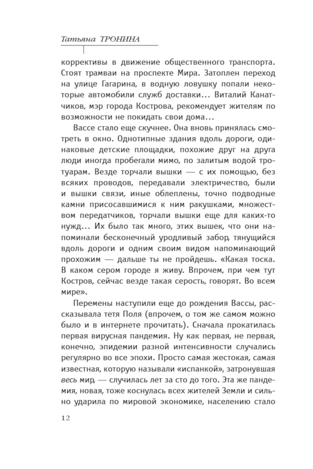 У Вассы, как утверждают врачи, слабое здоровье. Это только усложняет ее контакт с внешним миром, словно сошедшим с ума: строгие ограничения, постоянные ливни. Она жаждет перемен в своей однообразной и пресной жизни, больше похожей на бессмысленное существование. И такой шанс ей представляется. Но выдержит ли Васса груз новых знаний? Что делать, если весь твой мир переворачивается с ног на голову? Если то, что ты считала невозможным, оказывается реальностью, скрытой за одним большим обманом? А еще этот таинственный мужчина...| Издательство | Эксмо |