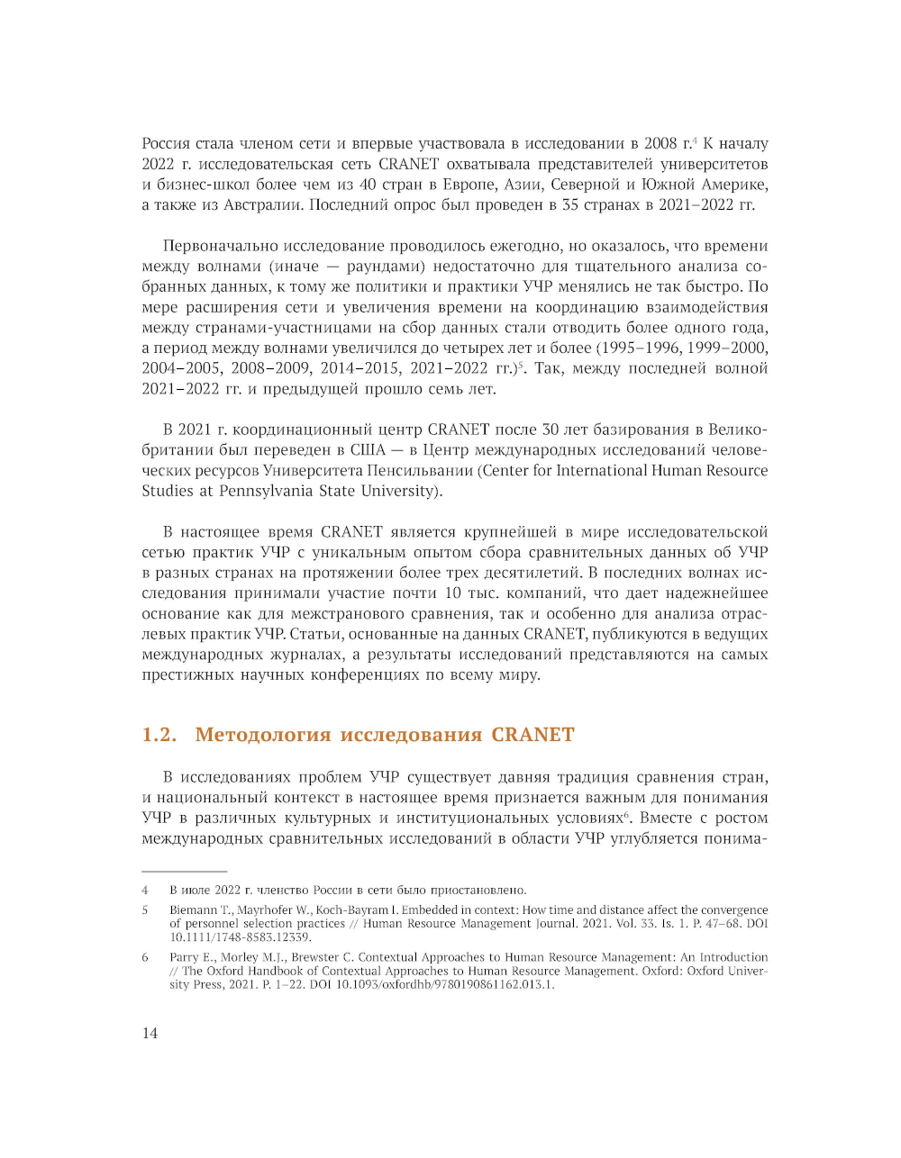 Аналитический доклад представляет материалы, освещающие деятельность международной сети исследователей практик управления человеческими ресурсами CRANET (Cranfield Network on Comparative Human Resource Management), уникального проекта для научного и профессионального сообществ в области управления человеческими ресурсами (УЧР). В докладе описываются методология и история исследования сети CRANET, анализируются динамика развития и результаты деятельности сети с 1991 по 2021 г. А также подводятся итоги трех волн российской части исследования: 2008-2009, 2014-2015 и 2021-2022 гг. Данные по волне 2021-2022 гг. представлены впервые. Доклад будет полезен исследователям практик УЧР в России, HR-специалистам и представителям бизнеса, заинтересованным в получении информации о состоянии и трендах в управлении людьми в российских компаниях.| Издательство | ИД Высшей школы экономики |