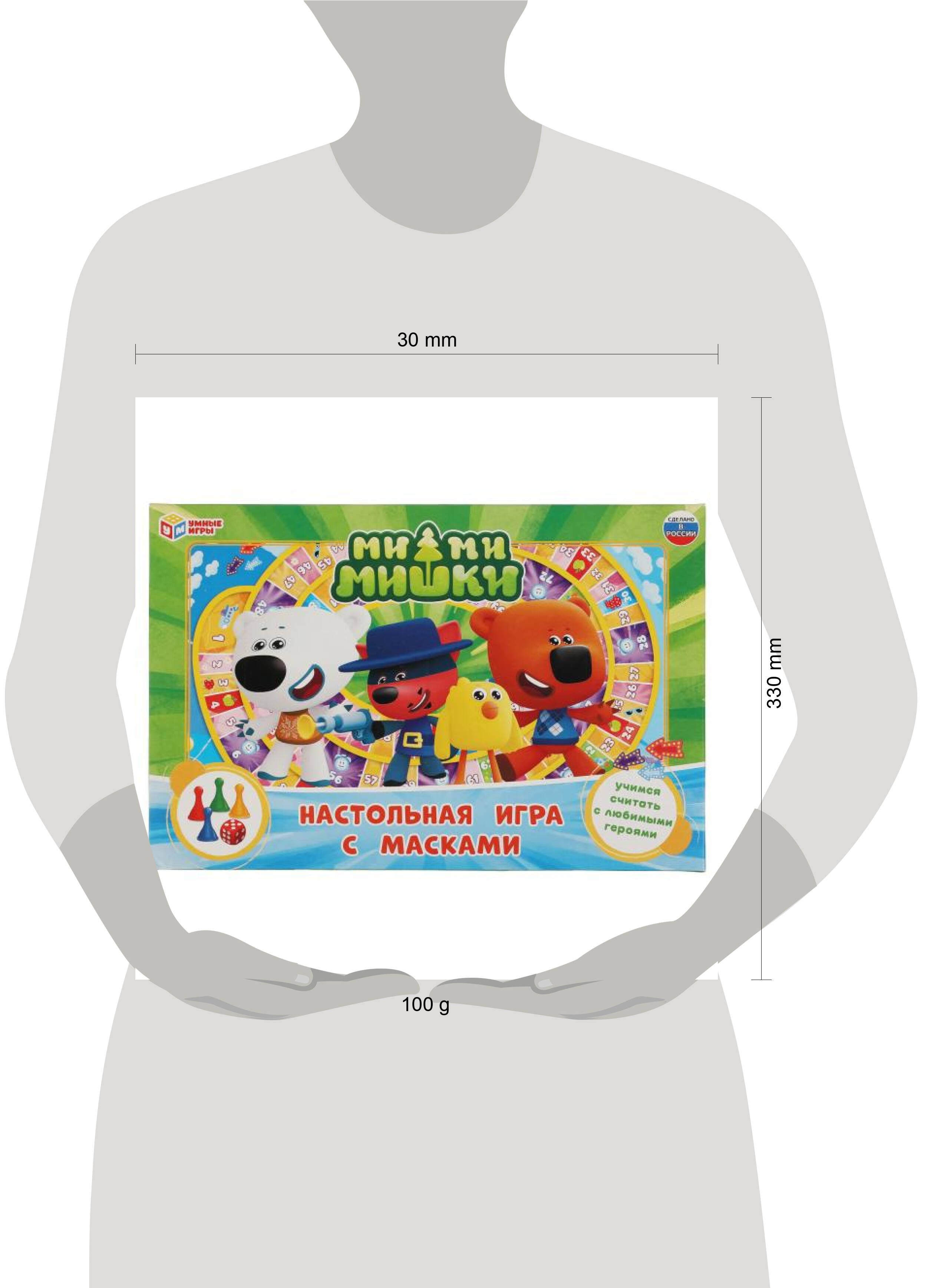 Настольная игра-ходилка "Ми-ми-мишки. Настольная игра с масками" ТМ "Умные игры" - это увлекательное путешествие в мир цифр вместе с любимыми героями. В наборе: - красочное игровое поле с персонажами м/ф - 4 фишки - 4 маски - кубик - правила игры В игре могут участвовать как 2 человека, так и дружная компания из 4 игроков. В начале игры каждый из играющих выбирает себе маску. Участники кидают кубик и ходят вперёд на выпавшее количество клеток, стремясь первым попасть на финиш и выиграть. В процессе игры необходимо преодолевать препятствия, пропускать ходы, возвращаться на ранее занимаемую позицию или перескакивать вперёд. Также игроку может выпасть поле с маской, в таком случае можно поменять свою фишку местами с фишкой одного из двух игроков, чьи цвета обозначены на этой маске. Играя, ребёнок научится действовать по правилам, соблюдать очередность ходов, выигрывать и проигрывать без слёз. Удобный формат позволяет взять игру с собой в дорогу. Игра-ходилка ТМ "Умные игры" в игровой форме обучает счёту и развивает: - ориентацию на плоскости - внимание - визуальное восприятие - логику - социально-коммуникативные навыки Размер упаковки: 33 x 22 x 3 см. Материал: пластмасса + картон. Рекомендовано детям от 3-х лет.| Издательство | С-Маркет ООО |