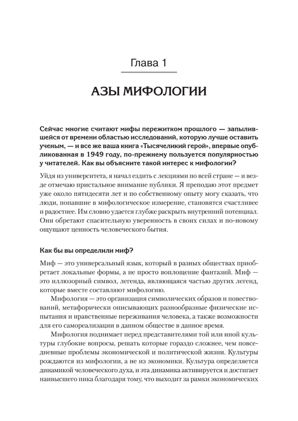Сравнительная мифология была малоизвестным академическим предметом, пока Джозеф Кэмпбелл не опубликовал «Тысячеликого героя». Благодаря этому новаторскому исследованию мифология из академических кругов пришла к массовому читателю. Кэмпбелл убедительно продемонстрировал, что все мифы, независимо от культуры, имеют фундаментальное единство. Помимо того, что Кэмпбелл много писал, за свою жизнь он прочитал тысячи лекций и интервью. В «Мифе и значении» собраны наиболее интересные и вдумчивые его ответы множеству интервьюеров, включая слушателей семинаров, историка Стида Теркеля и журналистов из таких изданий, как Time, Esquire и Psychology Today. Неформальный формат вопросов и ответов позволяет Кэмпбеллу проявить свое обаяние, юмор и легкое владение предметом. Вы узнаете: - Откуда берутся мифы? - Как Кэмпбелл обнаружил вневременную закономерность путешествия Героя? - Может ли наше политически расколотое мультикультурное общество найти мифы, по которым можно жить? - Как история жизни Кэмпбелла повлияла на его исследования?| Издательство | Питер |
