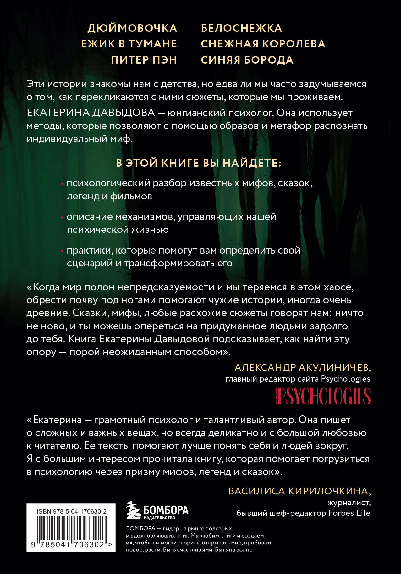 Нередко мы не понимаем, по каким законам существует наш внутренний мир, и из-за этого все происходящее с нами воспринимаем как судьбу. Сценарий, который мы проживаем, может казаться очень личным, однако если углубиться в эту тему, можно заметить схожие сюжеты, которые проживают женщины по всему миру. Эти сюжеты есть в древних мифах, народных сказках и старых как мир притчах. Екатерина Давыдова - юнгианский психолог. Методы, которые она использует, позволяют с помощью образов и метафор распознать индивидуальный миф. В этой книге вы найдете: - психологический разбор известных мифов, сказок, фильмов и песен; - описание механизмов, управляющих нашей психической жизнью; - практики, которые помогут вам определить свой сценарий и трансформировать его.| Издательство | ООО "Издательство "Эксмо" |