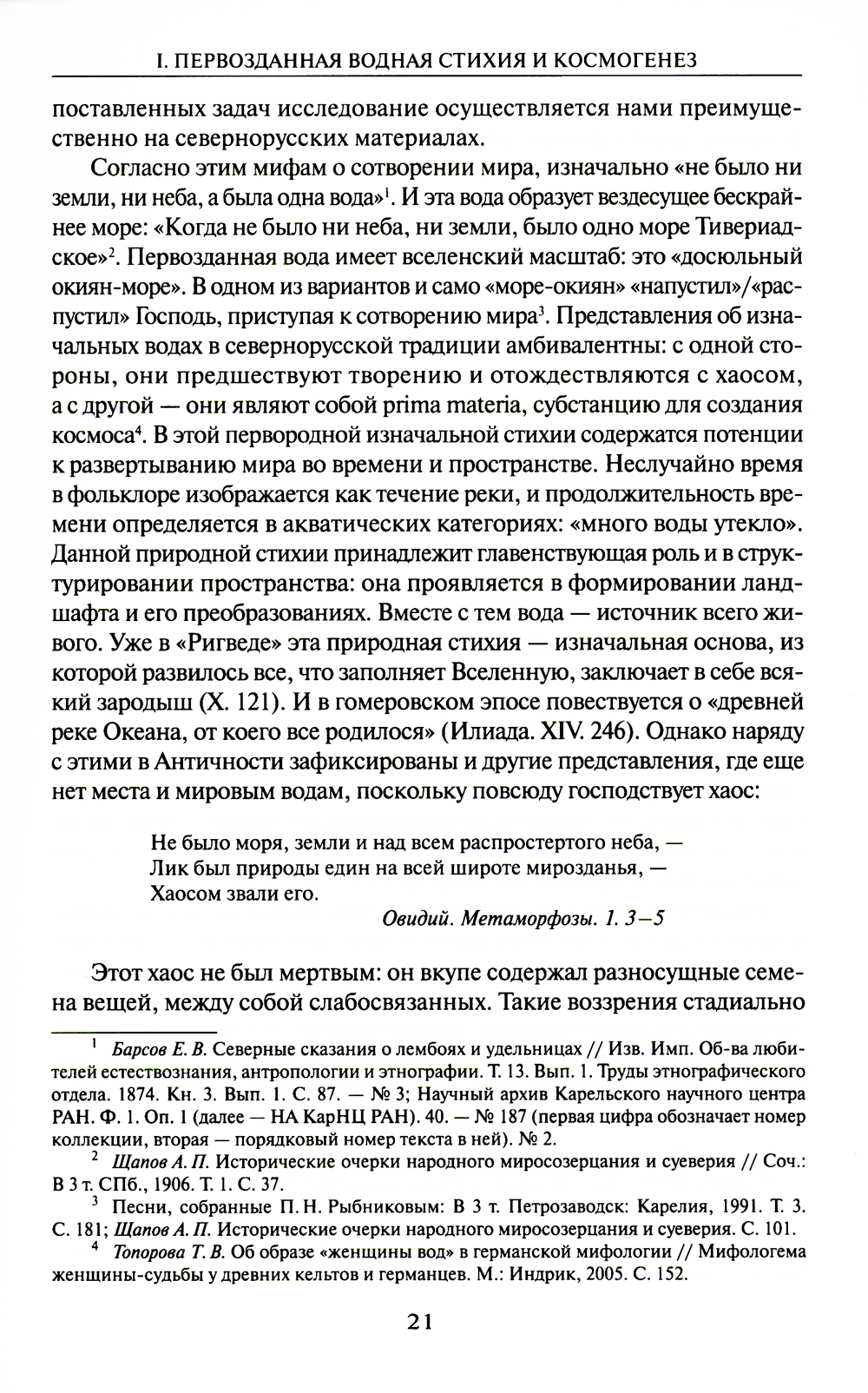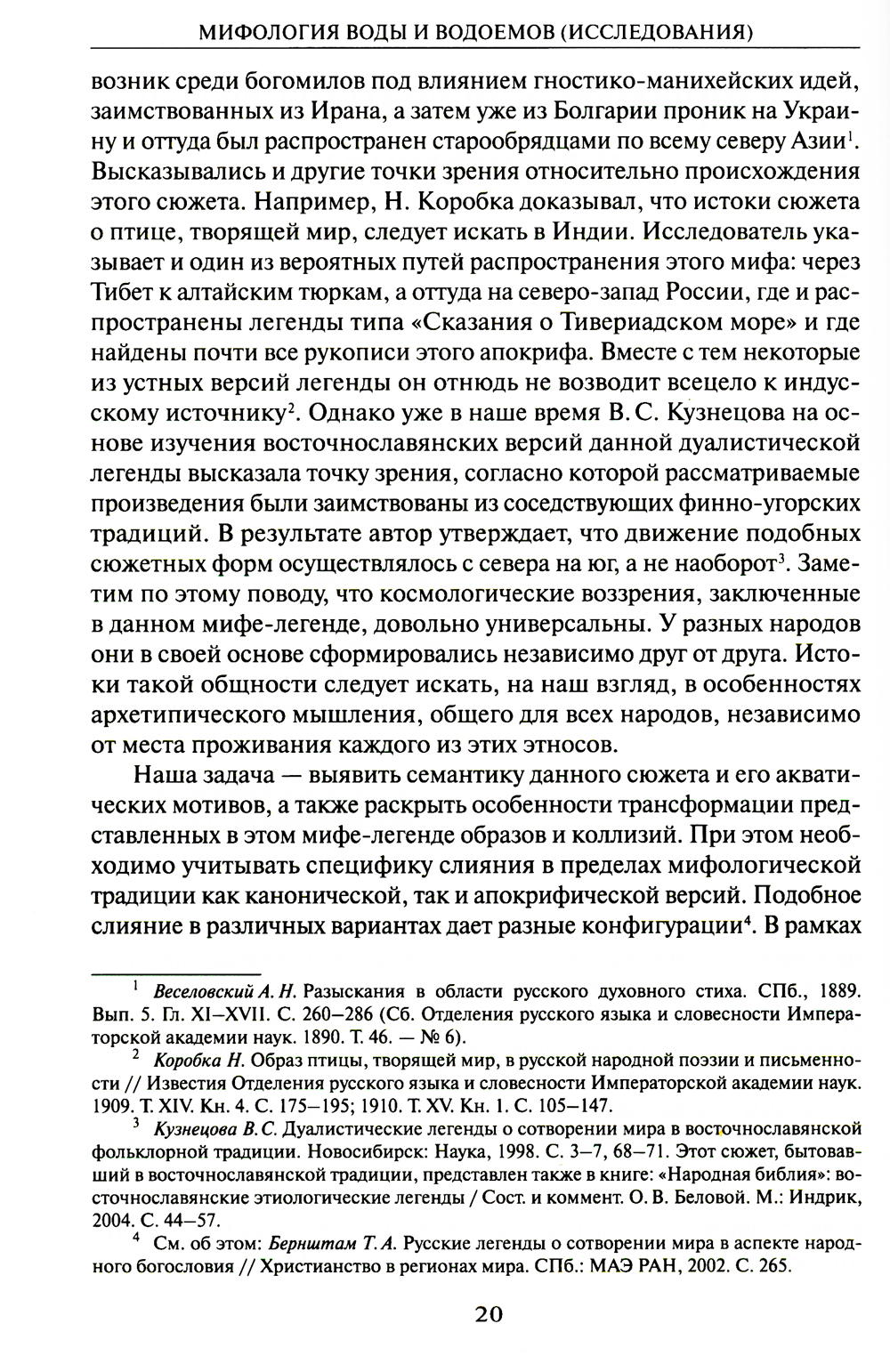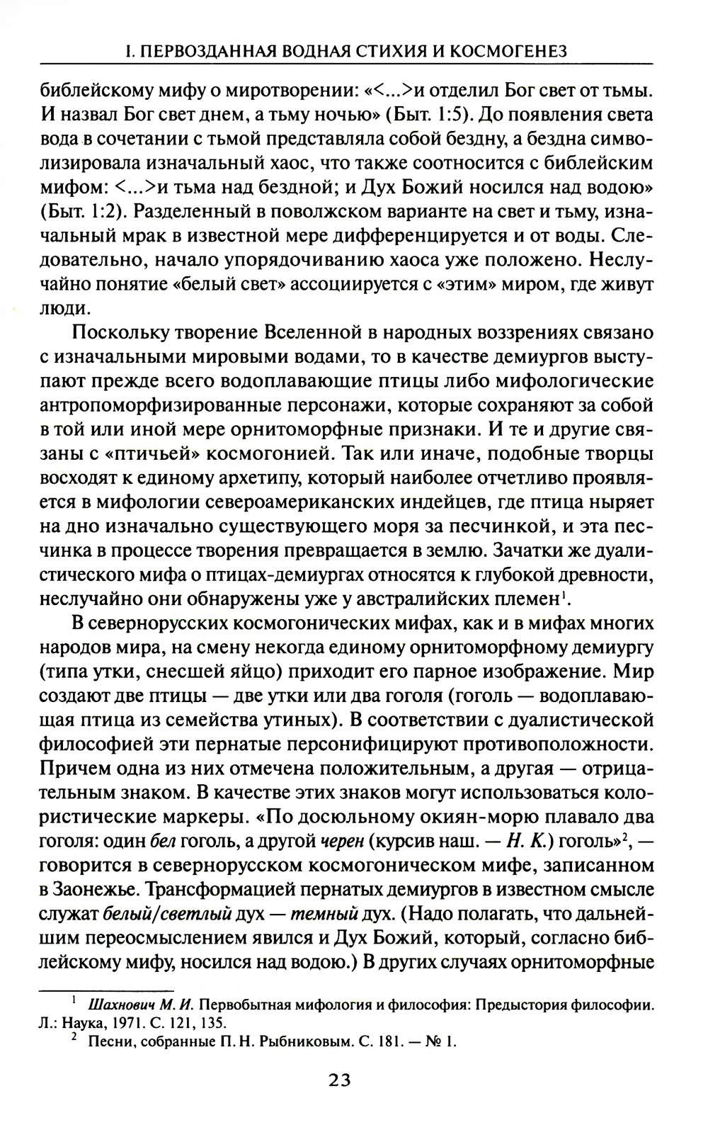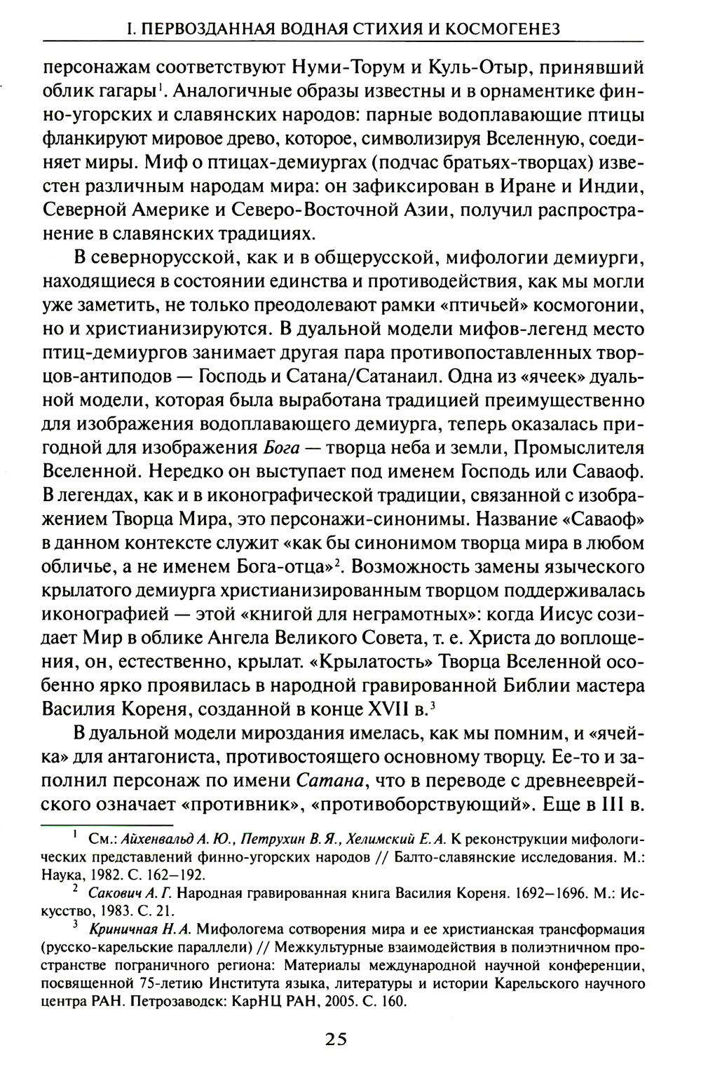 В данной книге впервые фронтально рассматривается водная стихия, представленная в севернорусской народной мифологической прозе. В качестве божеств этой стихии могут фигурировать и сами озера, реки, ручьи, и мифологический персонаж, в большей или меньшей степени выделившийся из воды, и дух-хозяин реки/озера, а также персонаж, связанный с водой, но негативно переосмысленный. Воспринимаемая мифологическим сознанием как первозданная живая стихия, вода играет в космогенезе главенствующую роль. Она же дает импульс к перевоссозданию мира, преобразованию ландшафта и социума. Водные божества предопределяют и предсказывают человеческую судьбу. Их волей обусловлены ритмы жизненного цикла, присущие каждому индивиду. Эти же божества участвуют в повседневности крестьянского бытия. Исследования сопровождаются корпусом текстов - 252 мифологическими рассказами, в основном впервые вводимыми в научный оборот. Тексты снабжены комментариями, указателями, словарем диалектных и устаревших слов. Это наиболее обширное собрание быличек, бывальщин, поверий, космогонических и этиологических рассказов, посвященных акватической тематике. Данные тексты служат материалом для исследований, предпринятых в настоящей книге, и сами раскрываются посредством этих исследований. Для фольклористов, этнографов, искусствоведов, историков, религиоведов, психологов, а также для всех любителей народной культуры.| Издательство | Академический проект |