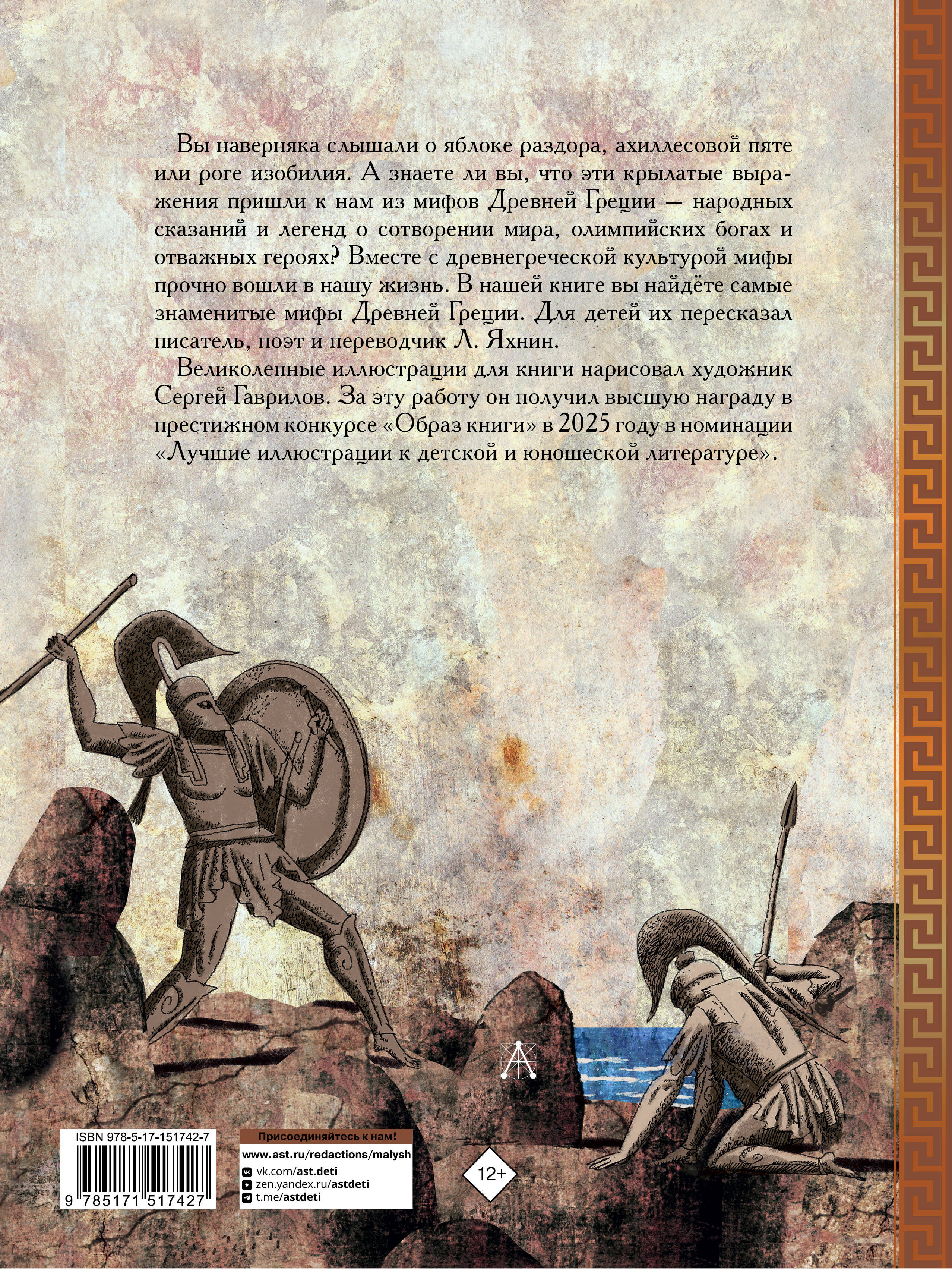 Вы наверняка слышали о яблоке раздора, ахиллесовой пяте или роге изобилия. А знаете ли вы, что эти крылатые выражения пришли к нам из мифов Древней Греции - народных сказаний и легенд о сотворении мира, олимпийских богах и отважных героях? Вместе с древнегреческой культурой мифы прочно вошли в нашу жизнь. В нашей книге вы найдёте самые знаменитые мифы Древней Греции. Для детей их пересказал писатель, поэт и переводчик Л. Яхнин. Великолепные иллюстрации для книги нарисовал художник Сергей Гаврилов. За эту работу он получил высшую награду в престижном конкурсе «Образ книги» в 2025 году в номинации «Лучшие иллюстрации к детской и юношеской литературе».| Издательство | Издательство "АСТ" |