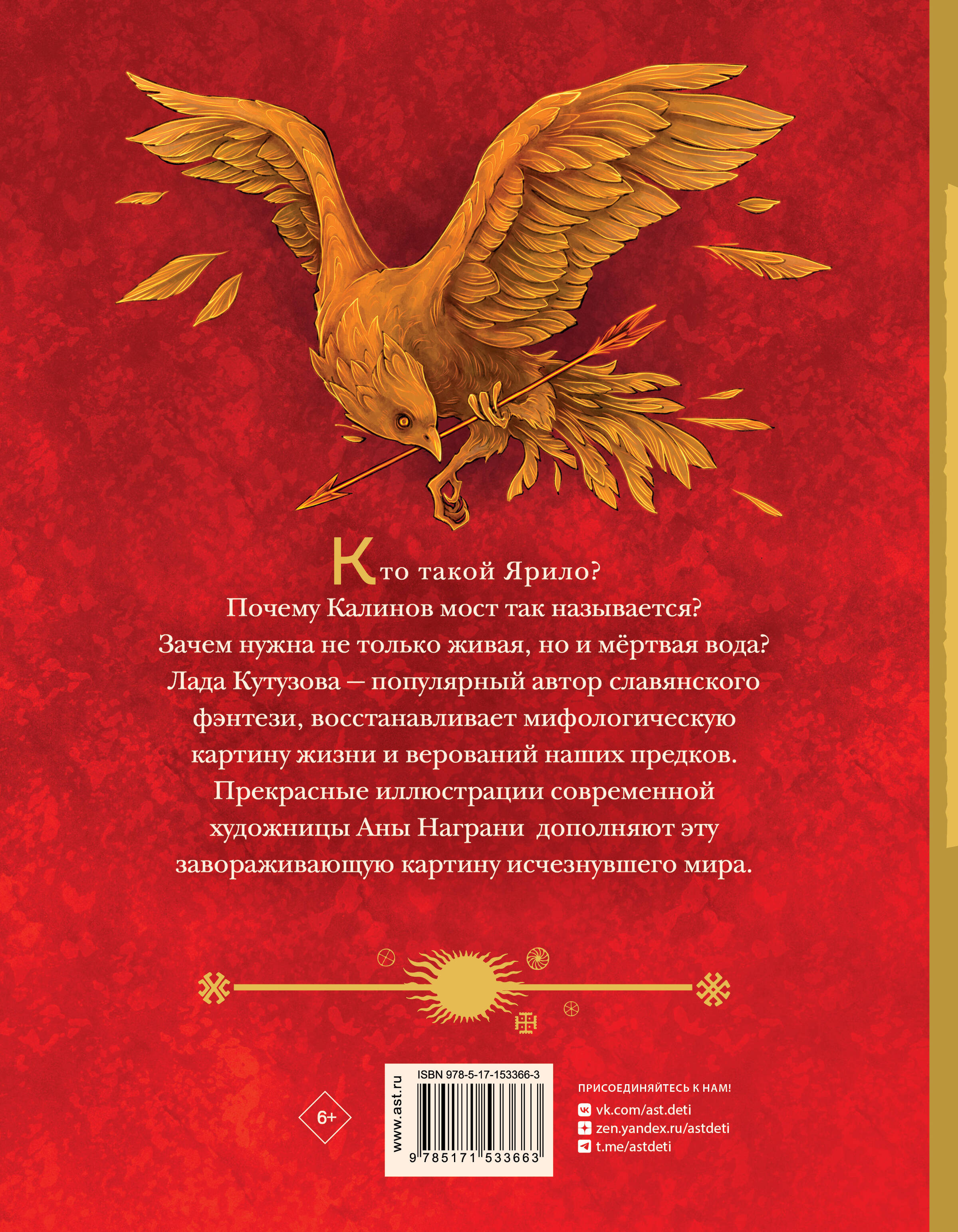 Кто такой Ярило? Почему Калинов мост так называется? Зачем нужна не только живая, но и мёртвая вода? Лада Кутузова - популярный автор славянского фэнтези, восстанавливает мифологическую картину жизни и верований наших предков. Прекрасные иллюстрации современной художницы Аны Награни дополняют эту завораживающую картину исчезнувшего мира.| Издательство | Издательство "АСТ" |