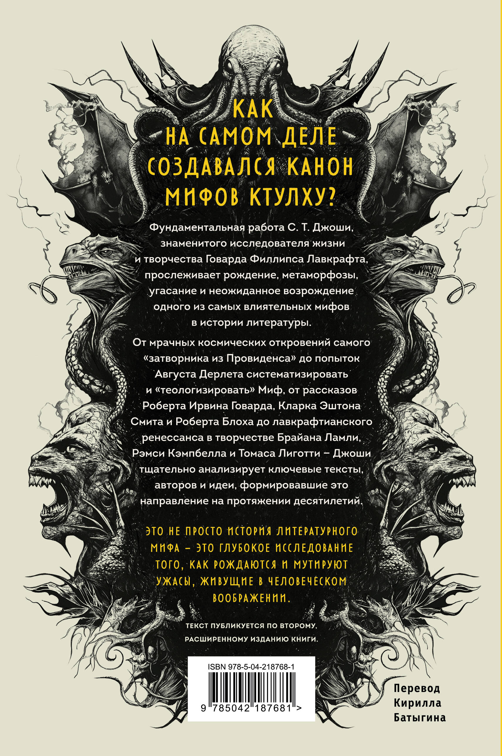 От автора фундаментального исследования «Лавкрафт. Я - Провиденс»! Кто на самом деле создал «Мифы Ктулху»? Чем «Мифы Лавкрафта» отличаются от того, что мы привыкли видеть у его последователей? И почему эта вселенная снова и снова завораживает миллионы читателей по всему миру? Главный эксперт по жизни и творчеству Лавкрафта, С. Т. Джоши, раскрывает тайную историю самого мрачного и влиятельного мифа XX века. От восхода до заката, от искажённых толкований до триумфального нового рассвета - перед вами книга, которая перевернёт ваше представление о Мифах Ктулху. Если вы хотите понять не только ужас в литературе, но и то, как рождаются и выживают культурные мифы, - эта книга станет вашим проводником в бездну. «Феноменально хорошая книга: энциклопедическая, всесторонняя, бескомпромиссно критичная». - Reddit «"Восход, закат и новый рассвет Мифов Ктулху" - уникальная книга, абсолютно гениальная. Настоящее исследование энциклопедических масштабов». - SFcrowsnest Review «Джоши действительно поднимает исследования лавкрафтианских мифов на недосягаемую высоту». - Reddit «Эта книга незаменима для тех, кто хочет понять структуру и историю Мифов Ктулху. Даже если вы не согласны с критикой автора, его стиль ясен и убедителен». - LibraryThing «Эта книга - шедевр, сочетающий в себе доступный стиль с обилием фактов и информации с критикой посредственных имитаций Лавкрафта, но делает автор это с юмором и знанием дела». - Amazon «Джоши - строгий ценитель космического ужаса». - Goodreads| Издательство | ООО "Издательство "Эксмо" |