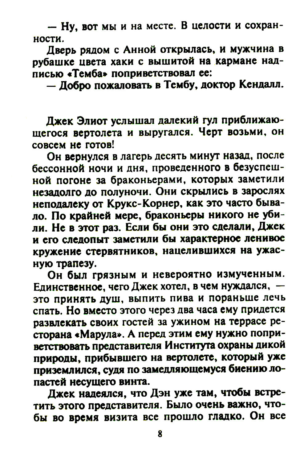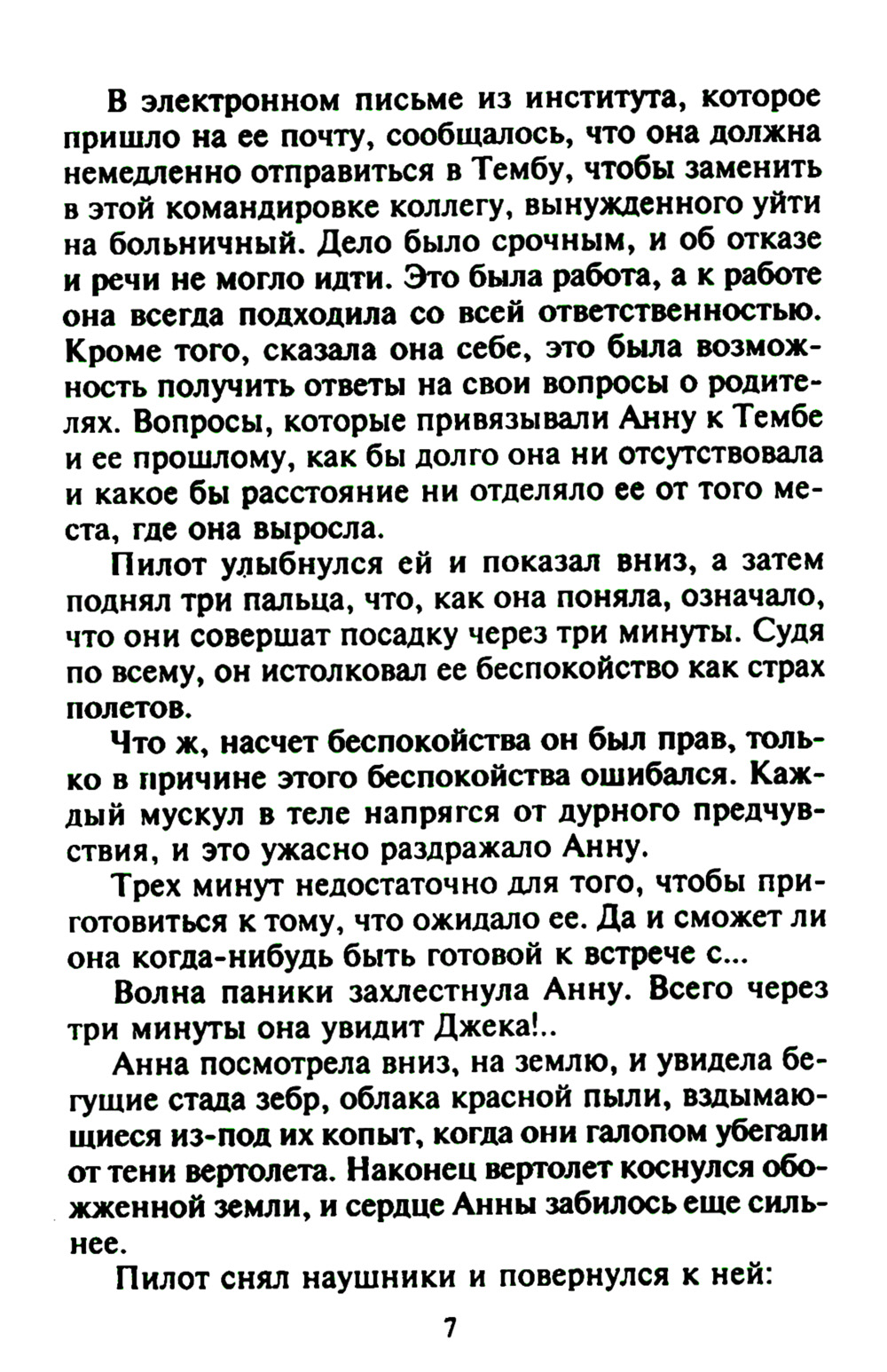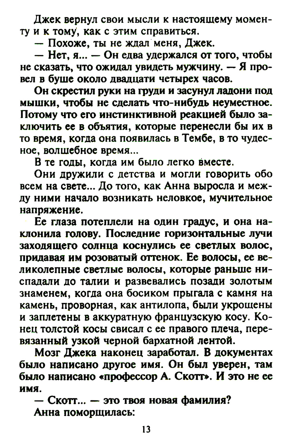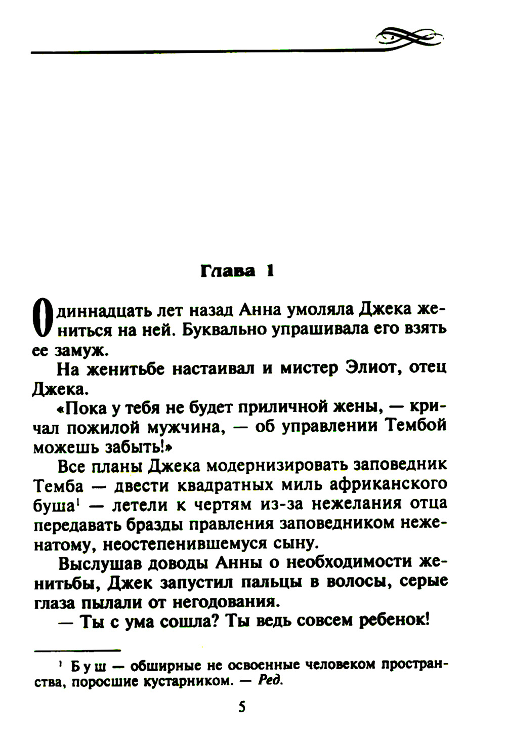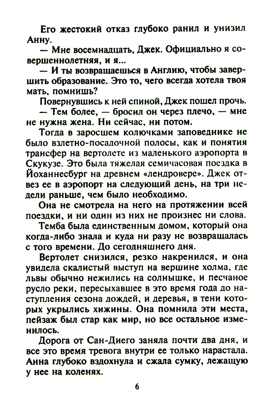 Биолог Анна Кендалл возвращается в Южную Африку, в заповедник дикой природы, где прошли ее детство и юность. Одиннадцать лет назад ей пришлось покинуть Тембу с разбитым сердцем - мужчина, которого она полюбила, отверг ее любовь. От прежней девчонки-дикарки не осталось и следа, теперь Анна - авторитетный специалист, от ее заключения зависит финансирование заповедника. Однако при встрече с Джеком Элиотом в ее сердце с новой силой разгорается любовь, а влечение, возникшее меду ними, жарче африканского солнца...| Издательство | Центрполиграф |
