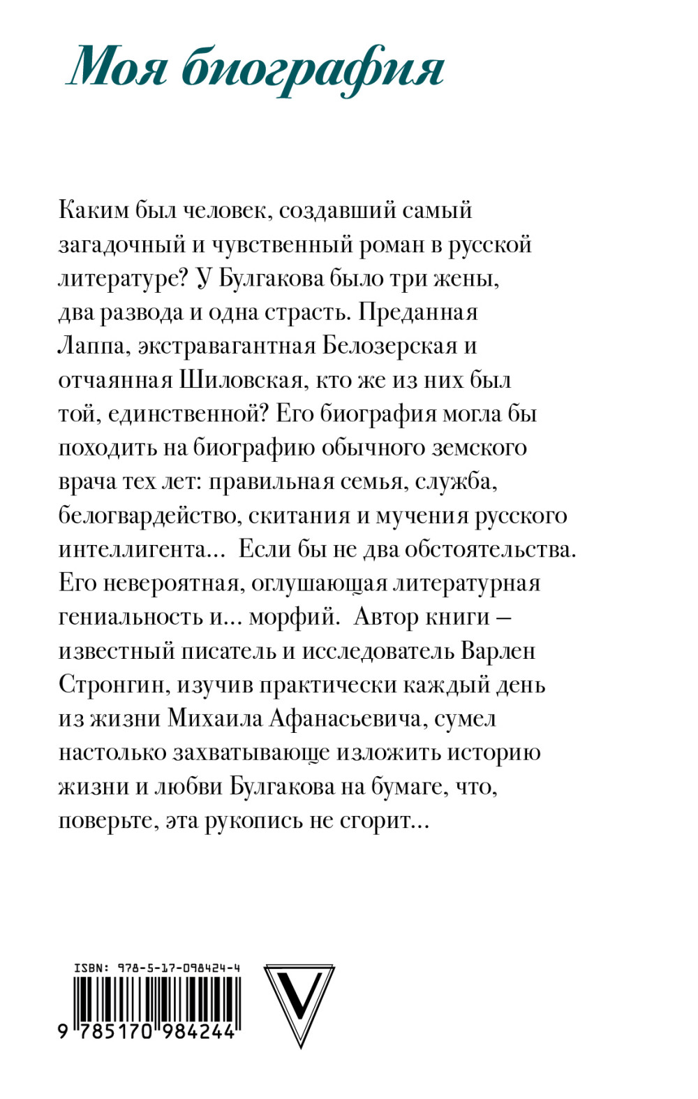 Каким был человек, создавший самый загадочный и чувственный роман в русской литературе? У Булгакова было три жены, два развода и одна страсть. Преданная Лаппа, экстравагантная Белозерская и отчаянная Шиловская, кто же из них была той, единственной? Его биография могла бы походить на биографию обычного земского врача тех лет: правильная семья, служба, белогвардейство, скитания и мучения русского интеллигента… Если бы не два обстоятельства. Его невероятная оглушающая литературная гениальность и морфий. Автор книги - известный писатель и исследователь Варлен Стронгин, изучив практически каждый день из жизни Михаила Афанасьвевича, сумел настолько захватывающе изложить историю жизни и любви Булгакова на бумаге, что, поверьте, эта рукопись не сгорит…