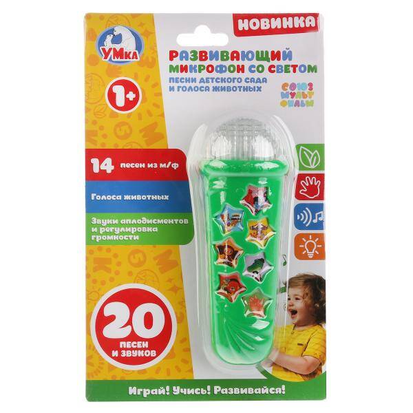 Аннотация: Микрофон 14 песен детского сада,голоса животных,регулировка громкости. Умка в кор.96шт