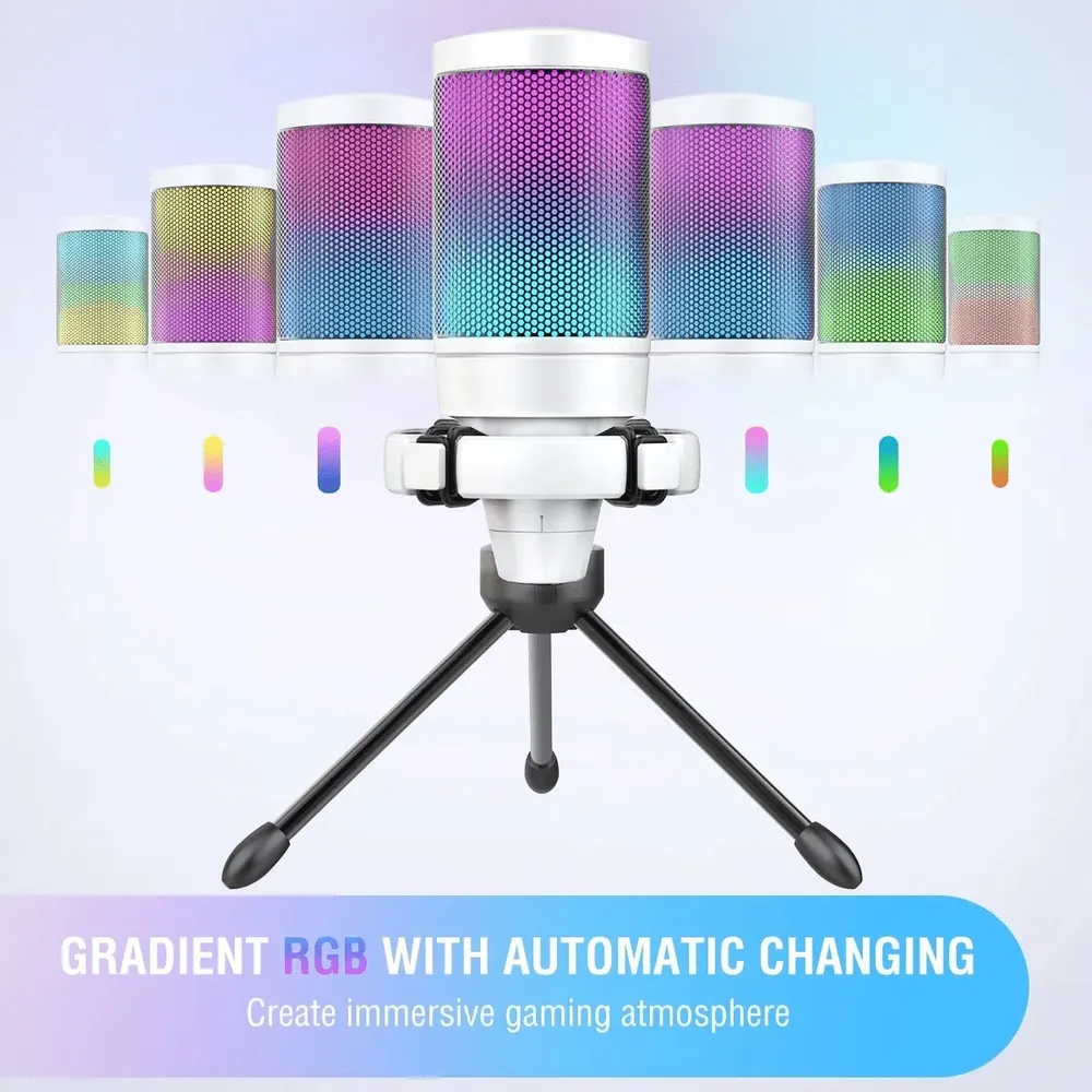 Микрофон Fifine AmpliGame A6V RGB для игр | подкасты | потоки | штатив | белый