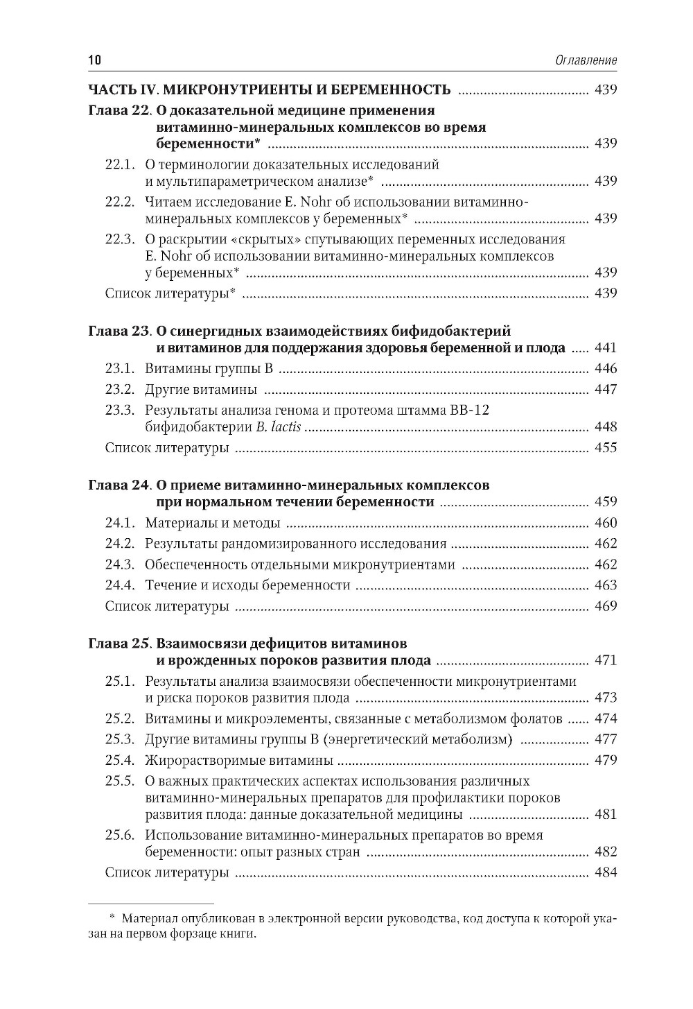 Второе издание руководства переработано и дополнено главами по самым актуальным вопросам акушерства, гинекологии и репродуктологии, перинатологии и репродуктивного здоровья, отражающим новейшие данные доказательной медицины, сведения о «новых микронутриентах», содержит информацию о новой коронавирусной инфекции COVID-19. Освещены разносторонние роли микронутриентов в репродуктивном и соматическом здоровье мужчин и женщин. Особое внимание уделено вопросам прегравидарной подготовки, микронутриентного сопровождения беременности и кормления грудью, нормализации менструального цикла, улучшения качества гаметоцитов. Подробно проанализированы участие микронутриентов в регуляции противовирусного иммунитета, ответ на вакцинацию против вирусов SARS-CoV-2, гриппа, гепатита и других инфекций. Книгу отличает современный постгеномный подход к рассмотрению молекулярно-физиологических ролей микронутриентов. Представленные результаты оригинальных клинических исследований были получены с использованием современных методов интеллектуального анализа данных - теорий метрического анализа и классификации значений признаков. Приведены итоги доказательных исследований по отдельным микронутриентам и использованию витаминно-минеральных комплексов, показывающие, что микронутрициальный баланс в буквальном смысле слова «программирует» состояние здоровья и родителей, и будущего ребенка. Издание предназначено широкому кругу практикующих врачей, в том числе терапевтам, репродуктологам, эндокринологам, гинекологам, акушерам и педиатрам, специалистам по питанию, а также ординаторам и студентам медицинских вузов.| Издательство | ГЭОТАР-Медиа |