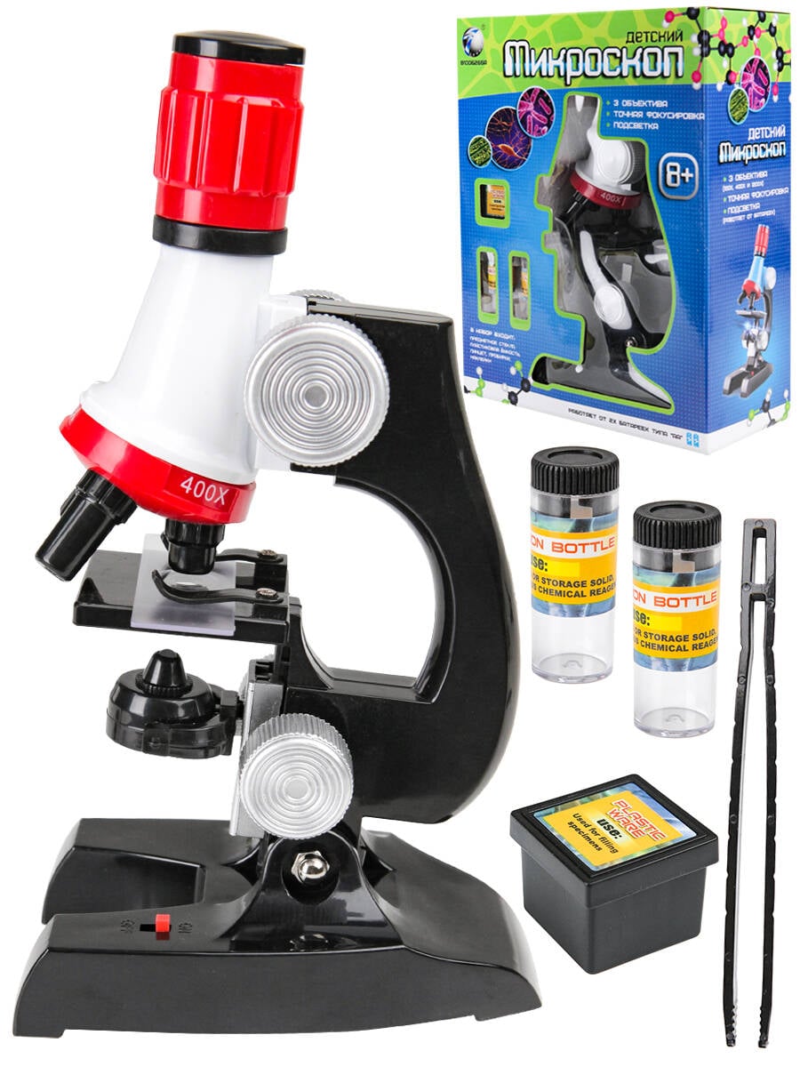 Микроскоп (24см) "ЛАБОРАТОРИЯ" (подсветка, 3 объект., стекло,пробирки,пинцет) (арт. 1006265R)