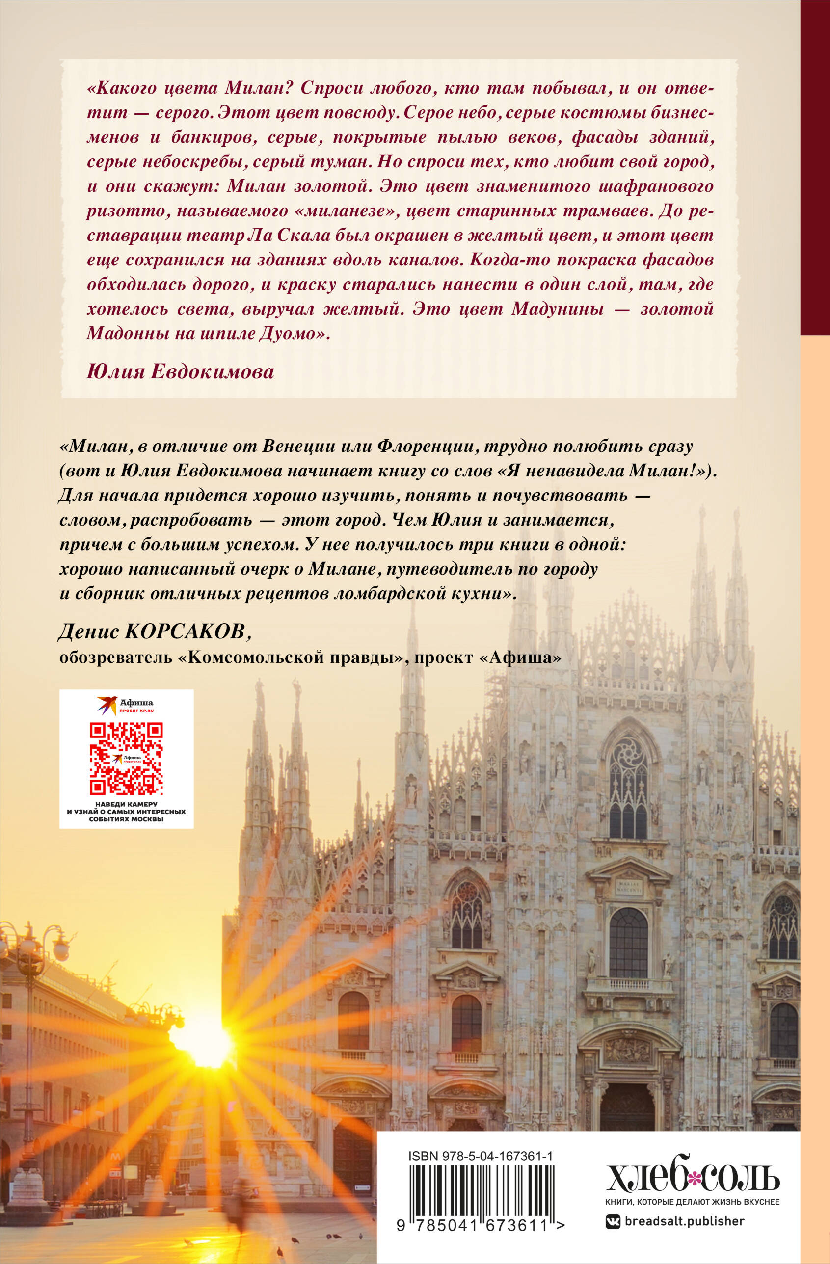 Пришло время посмотреть на Милан с другой стороны. Теперь и отныне это не только столица моды, но и столица еды! Найдите несколько часов, чтобы посидеть в уютном кресле-качалке с вином и сыром, а после отправляйтесь бродить по улочкам, где когда-то гулял Леонардо. А если это путешествие кажется скучным, то вас будут ждать в Бергамо на ужин с кроликом по-бергамасски!| Издательство | ООО "Издательство "Эксмо" |