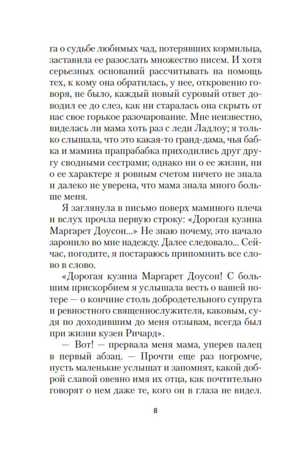 В яркой плеяде прославленных романистов Викторианской эпохи Элизабет Гаскелл занимает самое почетное место. Ее произведения признаны шедеврами мировой классики и переведены на десятки языков, в их числе романы «Крэнфорд», «Север и Юг», «Жены и дочери» и др. Повесть «Миледи Ладлоу» (1858), написанная на пике литературной славы автора, была опубликована в журнале Чарльза Диккенса «Домашнее чтение», как и большинство сочинений Элизабет Гаскелл. Сотканная из множества сюжетных линий, она овеяна очарованием «старой доброй Англии» и пронизана тонким юмором. Действие разворачивается в начале девятнадцатого столетия. Эпоха великих перемен, знаменовавшая промышленный переворот, еще не коснулась старинного поместья леди Ладлоу, где живут и несколько ее молодых воспитанниц. Все здесь дышит традицией и подчинено строгим правилам аристократической морали, но это не может спасти от мук разбитого сердца, и горечи утрат, и крушения надежд, хотя дает силы жить и творить добро. Текст повести публикуется в новом переводе!| Издательство | Азбука |