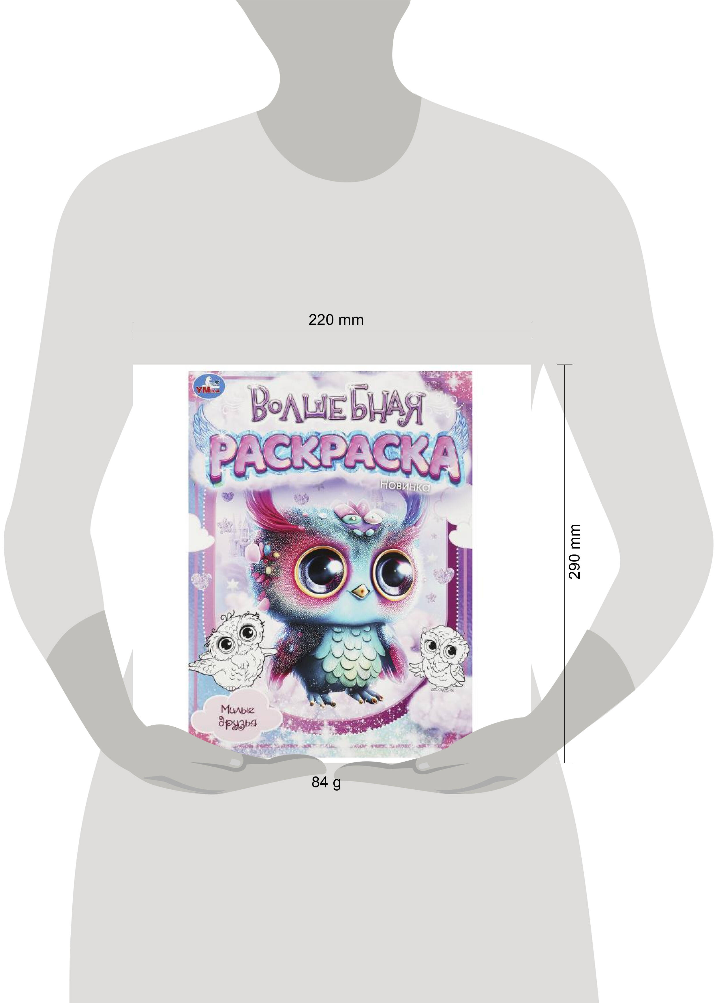Волшебная раскраска "Милые друзья" ТМ "УМка" приглашает детей порисовать: - чёткий контур картинок для раскрашивания - интересные иллюстрации с фантазийными персонажами - короткие комментарии к рисункам На страницах этой волшебной раскраски юного художника ожидает встреча с удивительными существами, которые обязательно ему понравятся. Раскрашивая красивые картинки, он приятно проведёт время и немного пофантазирует. Благодаря удобному формату раскраску можно взять с собой в путешествие. Игровые занятия с раскраской ТМ "УМка" тренируют руку к письму и способствуют развитию: - творческого мышления - внимания - фантазии и воображения - усидчивости Объём: 16 стр. Формат: 214 x 290 мм (А4). Материал: офсетная бумага. Рекомендовано детям младшего школьного возраста.| Издательство | С-Маркет ООО |