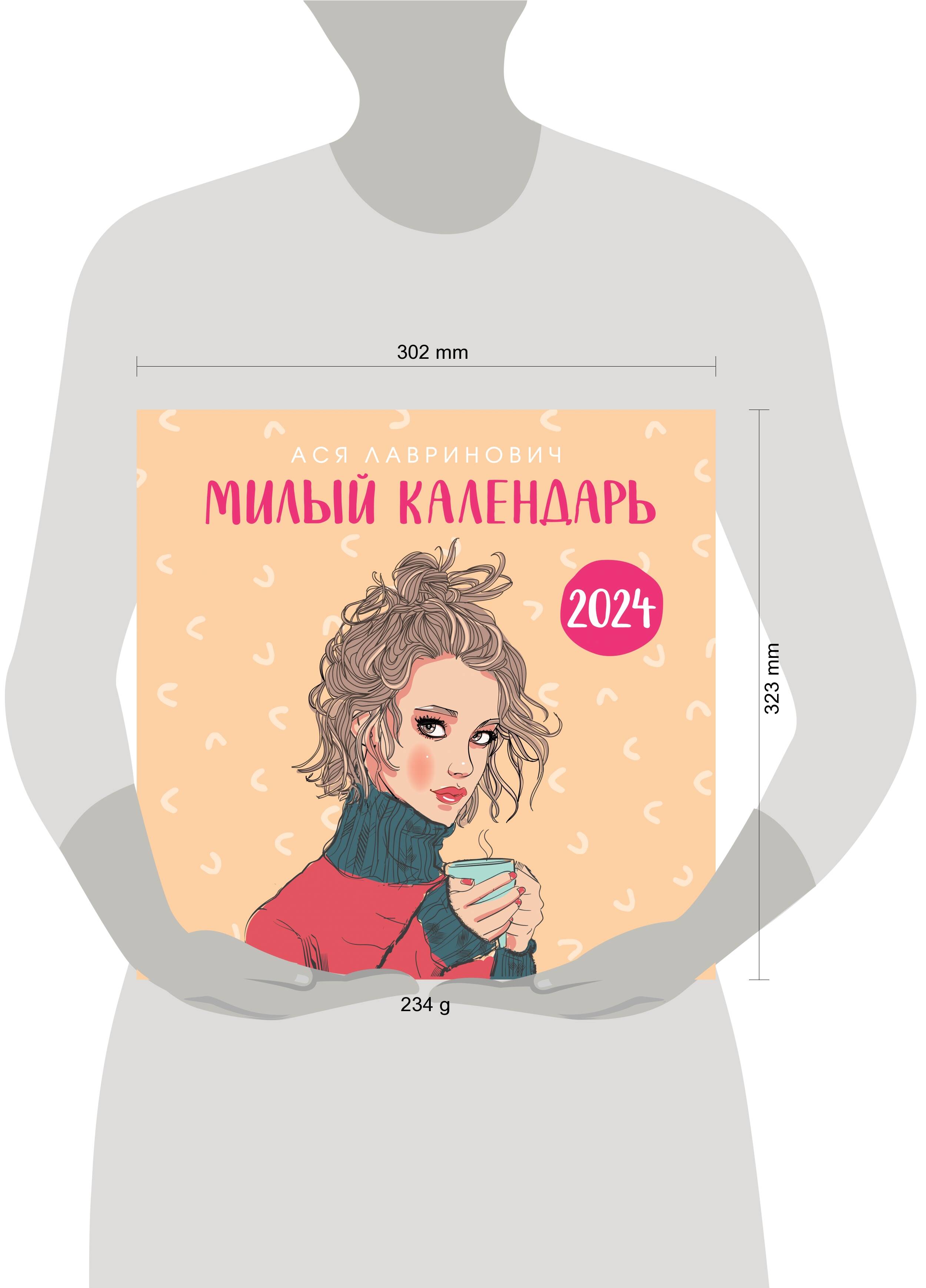 О календаре: Милый календарь от самого позитивного автора страны - Аси Лавринович! Каждый месяц встретит вас яркими красками и новыми очаровательными героинями, в которых вы узнаете себя. Заряжайтесь романтикой, милотой и позитивом. И пусть 2024 год станет самым ярким и запоминающимся! Для кого: Календарь непременно подойдет всем любителям творчества Аси Лавринович. А шикарные иллюстрации Елены Баренбаум - идеальное украшение любого интерьера. О серии: Наши настенные календари отличаются высоким качеством исполнения! Тщательно подобранные иллюстрации, напечатанные на глянцевой бумаге высочайшего качества, станут настоящим украшением дома, а в календарной сетке найдется место для ваших планов: большие клетки позволят делать записи и организовать свой год! В календаре также отмечены все государственные праздники. В серии настенных календарей издательства «ЭКСМО» каждый найдет тему по вкусу: великие художники, великолепные подборки с самыми знаменитыми произведениями искусства, легендарные кинематографические саги и игры, главные книжные авторы и бестселлеры, фотографии и иллюстрации любимых животных и многое-многое другое! Технические параметры: - Тип календаря - настенный перекидной. - Год - 2024. - Календарная сетка - с разбивкой по месяцам. - Вид скрепления - скрепка. - Ширина - 30 см. - Высота - 30 см. - Внутренний блок - мелованная бумага 150 г/м2. - Подложка - плотный гофрокартон для поддержания формы. - Индивидуальная упаковка в плотный целлофановый пакет.| Издательство | ООО "Издательство "Эксмо" |