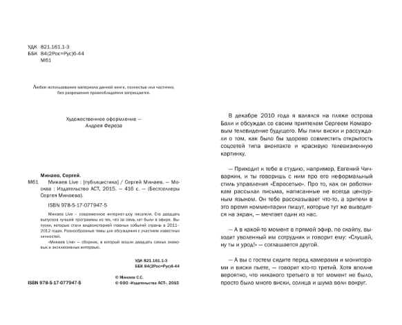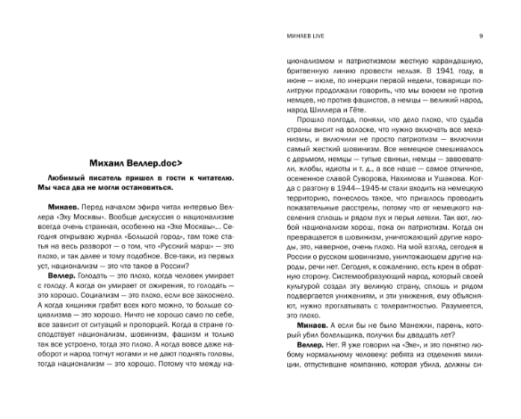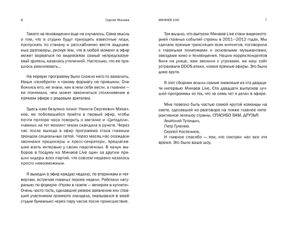 «Минаев Live» - сборник, в который вошли двадцать самых знаковых и эксклюзивных интервью.