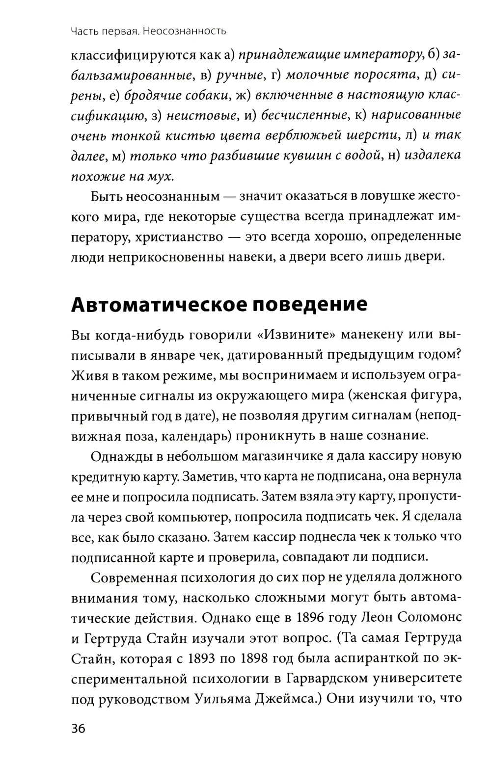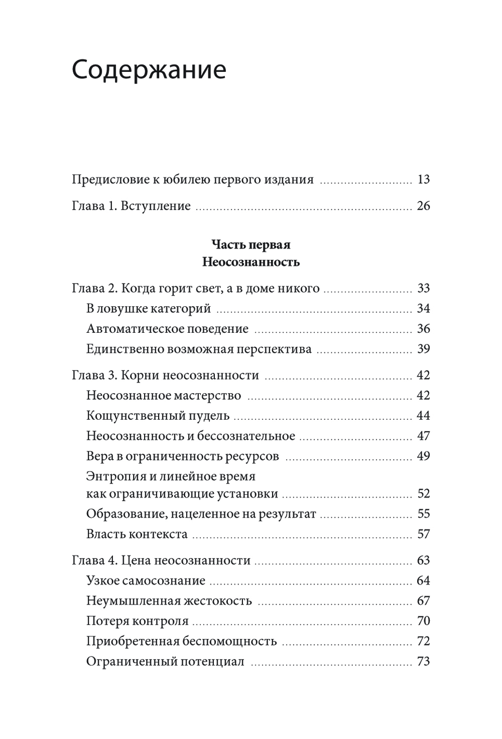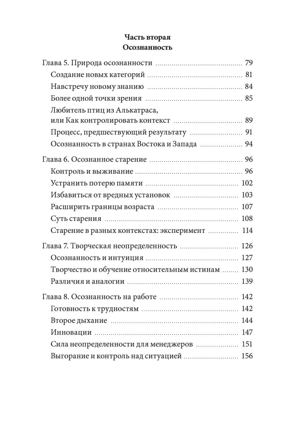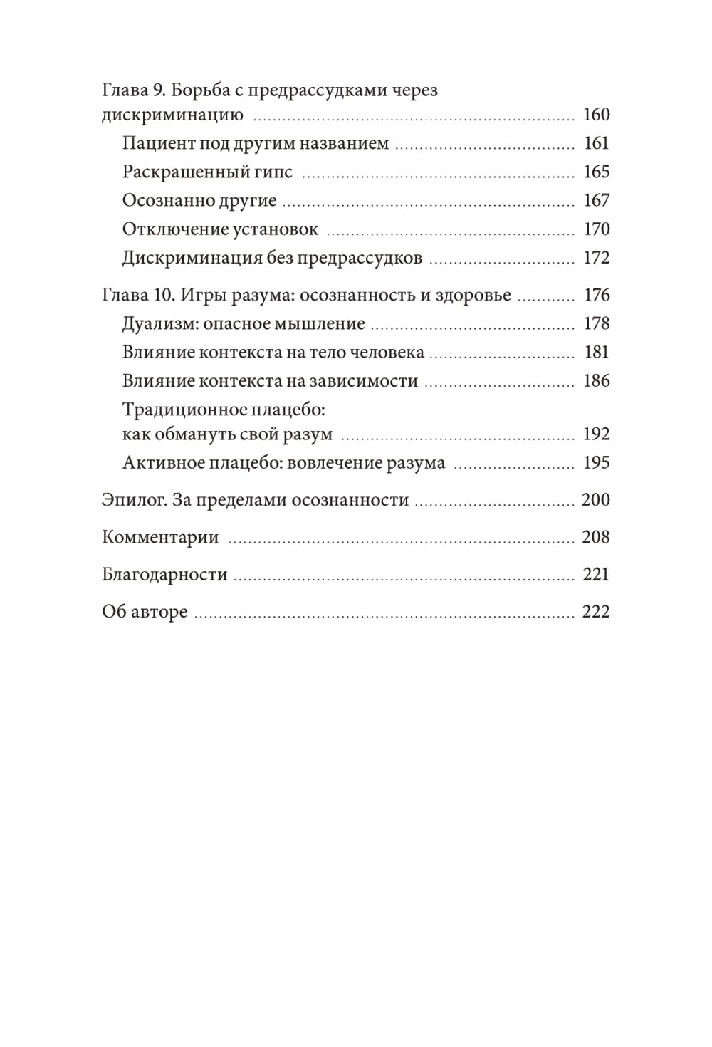 Эллен Лангер - первая женщина-профессор психологии в Гарварде, автор теории осознанности. Ее работы положили начало изучению взаимосвязей тела и сознания, а результаты исследований применяются по всему миру в образовании, здравоохранении, бизнесе, маркетинге и других сферах. Эта основополагающая книга по осознанности переведена на 15 языков и переиздается более 30 лет. Вы узнаете, как с помощью осознанности улучшить самочувствие, отношения, профессиональную деятельность и повысить качество жизни. А также получите научно-обоснованную информацию о том как работают внимание, интуиция, мышление, самоконтроль, предрассудки и автоматическое поведение.