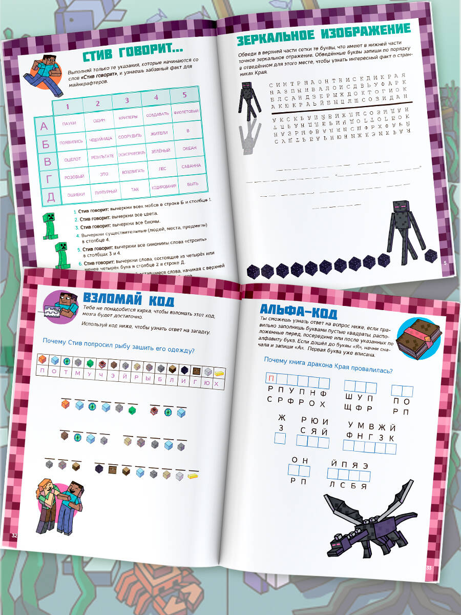 В этой книге есть всё для того, чтобы развлечь скучающих майнкрафтеров! Ведь их ждут запутанные лабиринты с опасными криперами, захватывающие головоломки с инструментами и блоками, а также увлекательные загадки, решив которые читатели больше узнают о мире Minecraft. Книга создана специально для детей младшего школьного возраста - крупные буквы, яркие иллюстрации и увлекательные задания помогут одновременно подготовиться к школе и весело провести время.| Издательство | ИЗДАТЕЛЬСТВО "АСТ" |