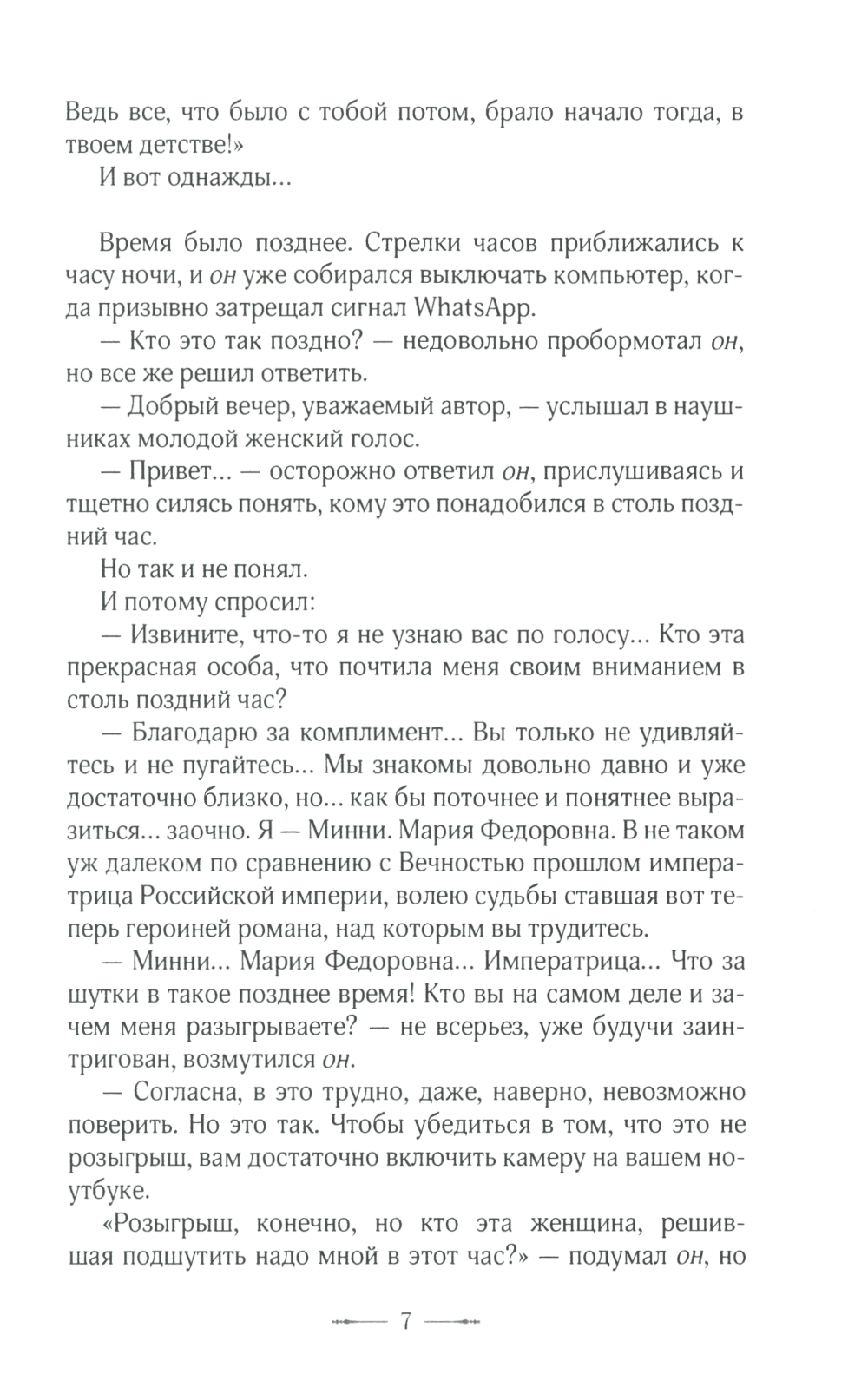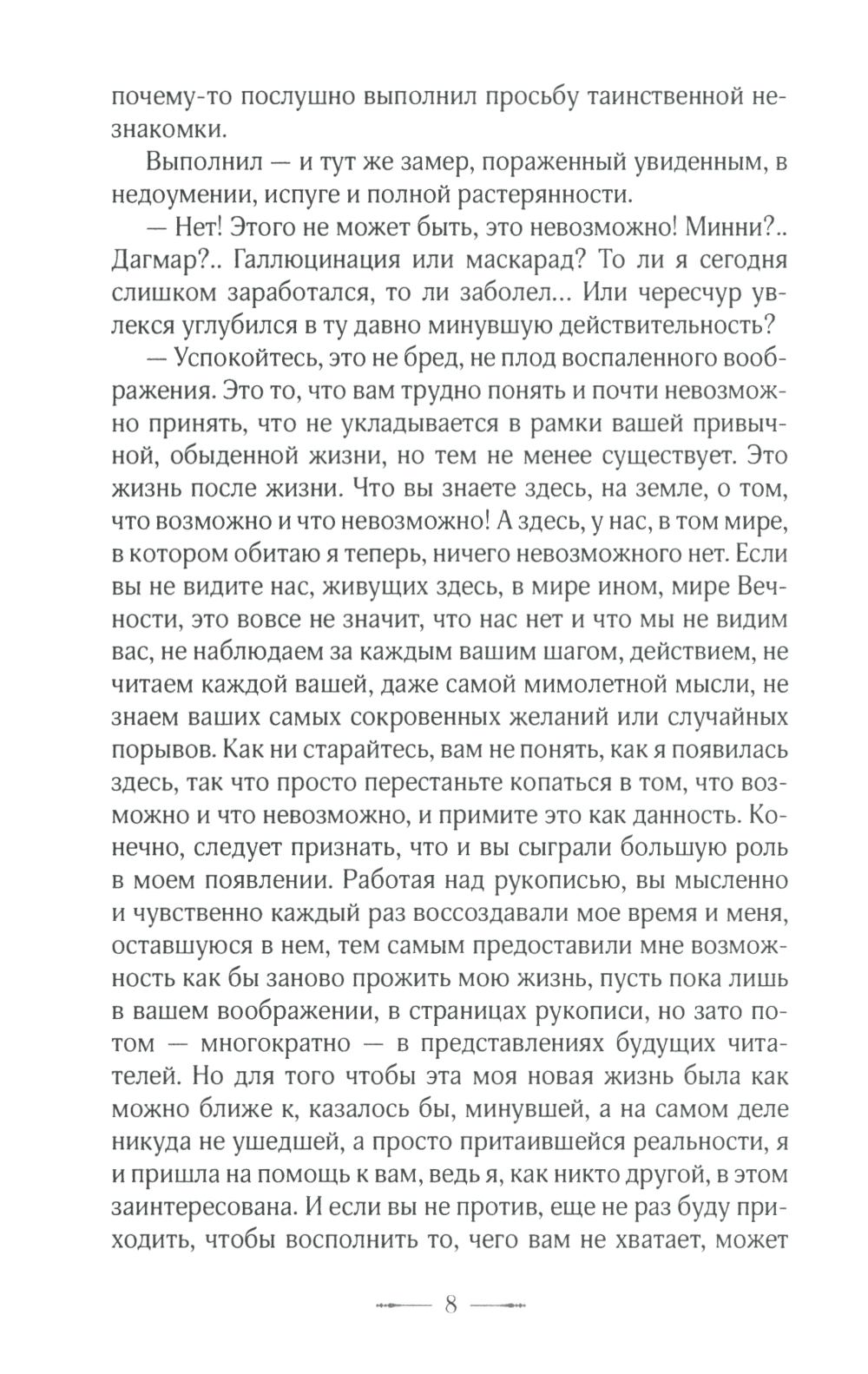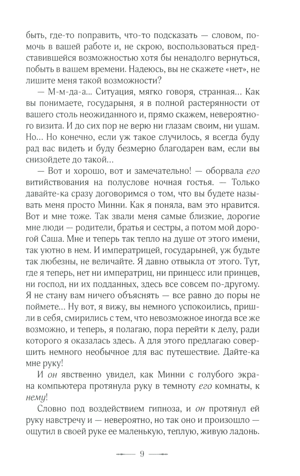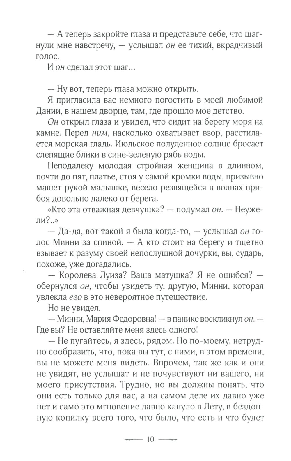 Роман «Minni. Призвание - любить» погружает читателя в эпоху расцвета и трагического падения Российской империи, крушения жизней, верований и надежд миллионов людей. Но не об этом основной сюжет этого произведения, а о большой, ставшей бессмертной и дарящей человеку бессмертие любви. В центре его судьба замечательной женщины - дочери, невесты, любящей и любимой жены, матери. В книге повествуется о невероятных событиях в жизни датской принцессы Дагмар, ставшей русской императрицей Марией Федоровной.| Издательство | ИПО "У Никитских ворот" |