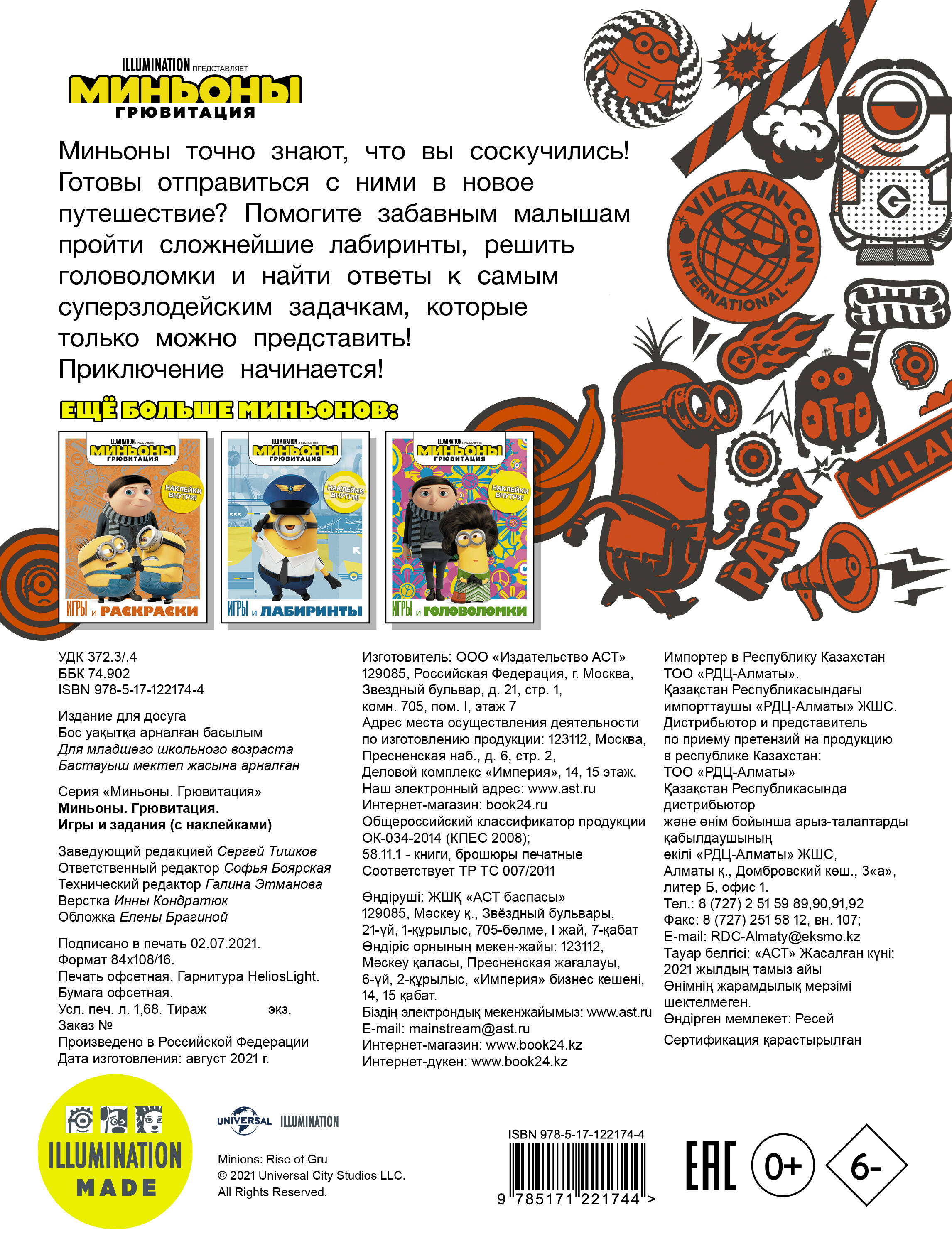 Аннотация: Миньоны. Грювитация. Игры и задания (с наклейками)