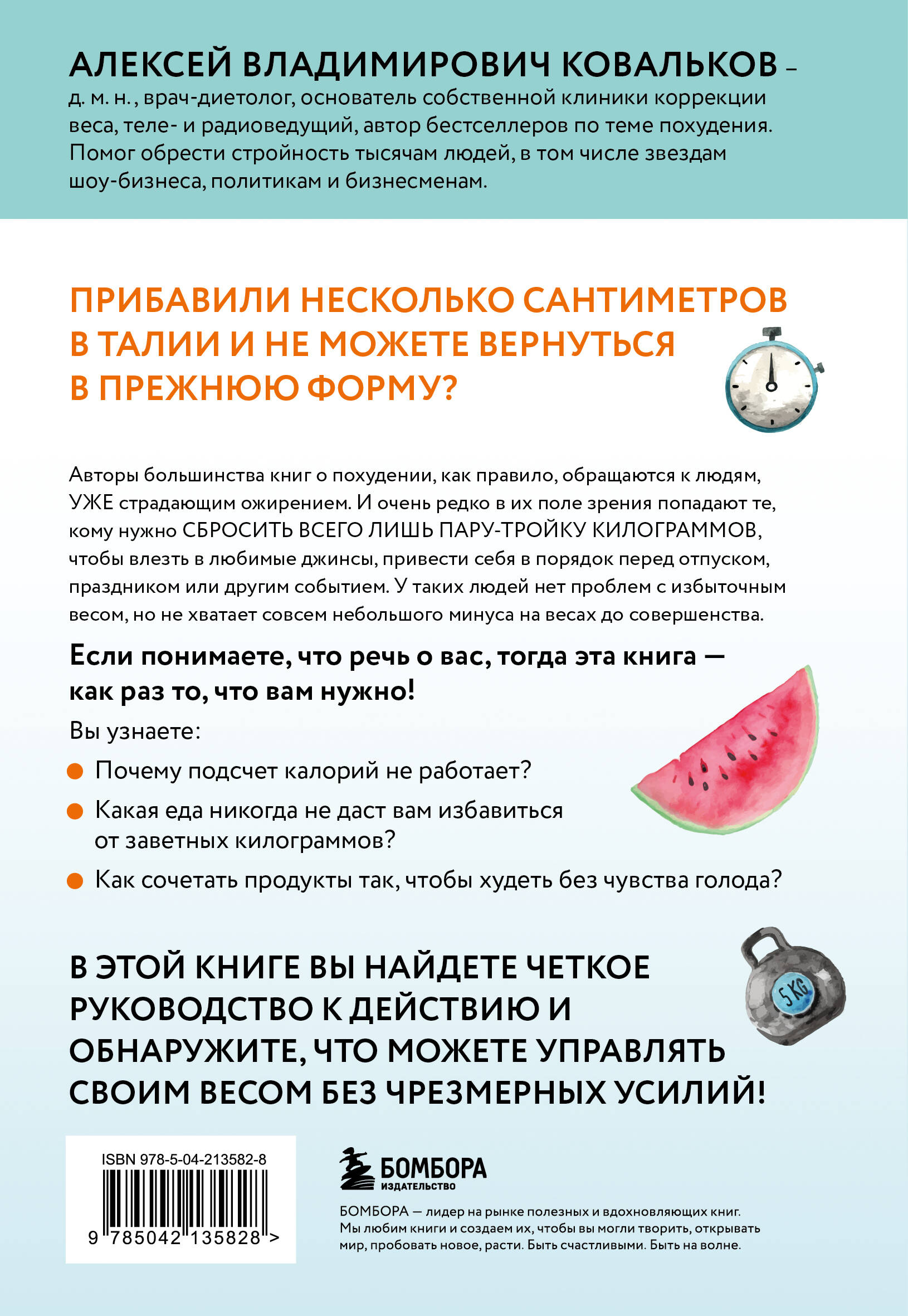 Алексей Ковальков, доктор медицинских наук, автор бестселлеров о похудении. Он предлагает эффективную, а главное - безопасную экспресс-диету для тех, кто не испытывает проблем с избыточным весом, но остро нуждается в избавлении от пары килограммов в кратчайшие сроки. В своей книге он не просто дает четкое руководство к действию, но также просто и понятно объясняет: · почему не стоит тратить время на подсчет калорий; · как добиться результата, убрав из рациона всего пять продуктов; · как вкусно и сытно есть, не опасаясь за свою фигуру. Благодаря этой книге вы сможете легко и быстро расстаться с лишними килограммами навсегда!| Издательство | ООО "Издательство "Эксмо" |