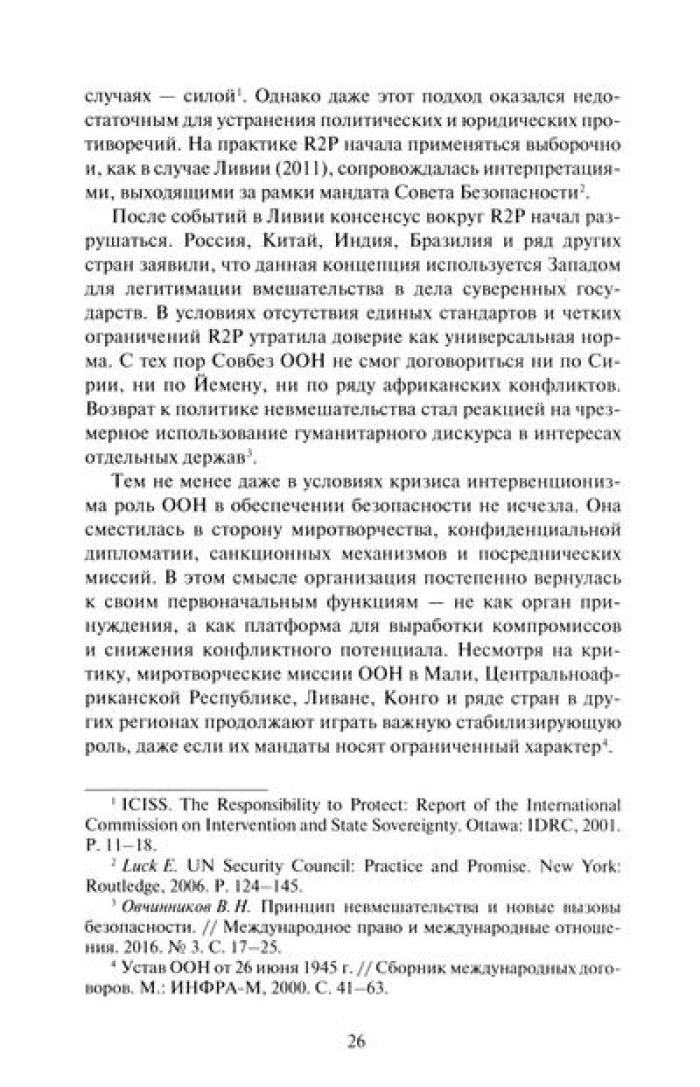 Книга представляет собой трезвый и глубокий анализ миротворческой деятельности Организации Объединенных Наций в эпоху глобальной нестабильности. Автор показывает, что миротворчество никогда не было нейтральным инструментом, а всегда отражало политические интересы и культурные представления своей эпохи. От Вестфальского мира до современных гуманитарных кризисов - исследование выявляет пределы универсализма, кризис доверия и структурные противоречия в работе ООН. Особое внимание уделено российской внешнеполитической перспективе и постколониальной критике миротворческих практик. Разбор кейсов Руанды, Ливии, Сирии, Афганистана и африканских конфликтов показывает, как благие намерения сталкиваются с жесткой геополитикой. Монография обращена к тем, кто ищет не утешительные ответы, а честный анализ того, как меняется понятие «мир» и каковы перспективы ООН в XXI веке. Это книга для исследователей, дипломатов и всех, кто стремится понять, почему институты, созданные для защиты мира, так часто оказываются бессильны перед лицом новых войн.| Издательство | Международные отношения |
