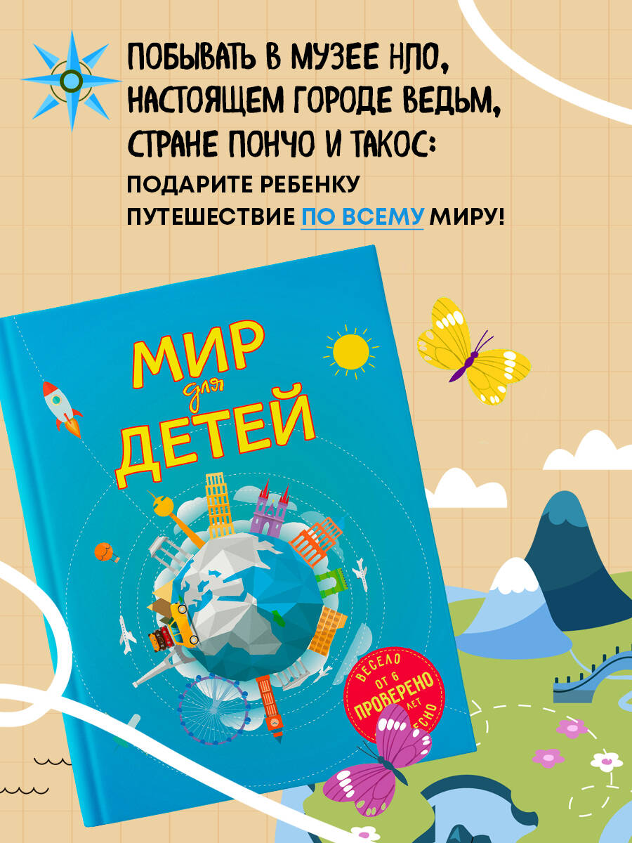 Весь мир в одной книге! Вы отправитесь в увлекательное путешествие по континентам, морям и океанам, странам и городам в самых разных уголках нашей планеты. Эта книга для родителей, которые видят в своих детях будущих гениев и помогают им получать максимум знаний об окружающем мире. Для детей, которые любят всё интересное, необычное и познавательное. Увлекательные задания, удивительные факты, комиксы и яркие иллюстрации - всё это поможет вашему ребенку узнать мир, в котором он живет. Книга «Мир для детей» ответит на максимум вопросов детей об обычаях других стран, о климатических особенностях континентов, об иностранных народах и необычных животных. Издание обновлено и дополнено в 2022 году.| Издательство | ООО "Издательство "Эксмо" |