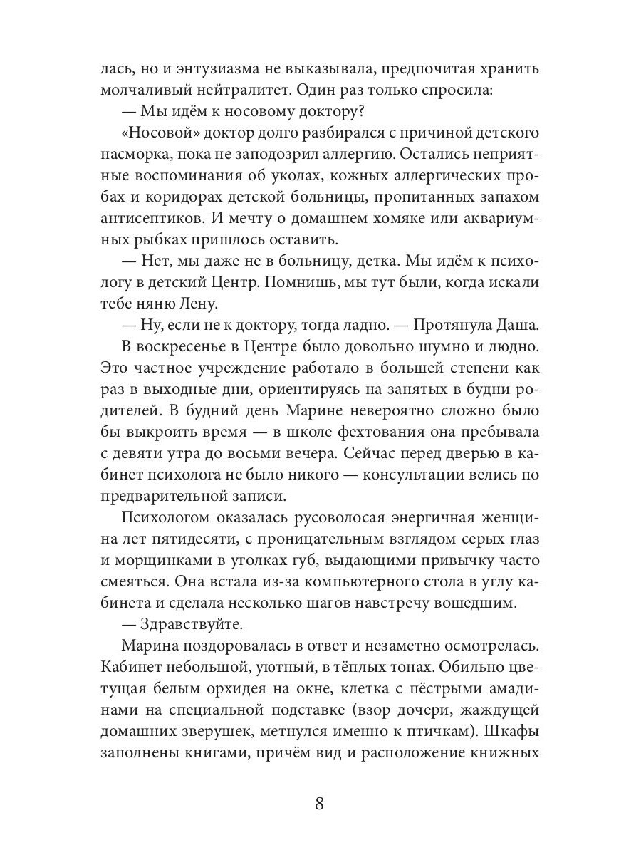 Почти тринадцать лет прошло с момента предыдущих приключений Марины Скворцовой. Да, она пыталась вернуться в Озёрный Дом, прибегнув к помощи Путешественников, бродяг между мирами. Ничего не получилось! Брак тоже оказался неудачным. Теперь только собственный бизнес, много работы, а единственная отдушина - маленькая дочка. Пятилетняя Даша видит странные сны о прошлом своей мамы и её пребывании в иной реальности. Сны сменяются кошмарами. Скворцова обращается за помощью к специалисту по клинической психиатрии и попадает в поле интересов спецслужб. Героиню ждёт возвращение туда, где начались события предыдущей книги. Там остались надежды на женское счастье, старые друзья, а ещё - могущественные враги, у которых на Марину особые планы…| Издательство | Т8 RUGRAM |