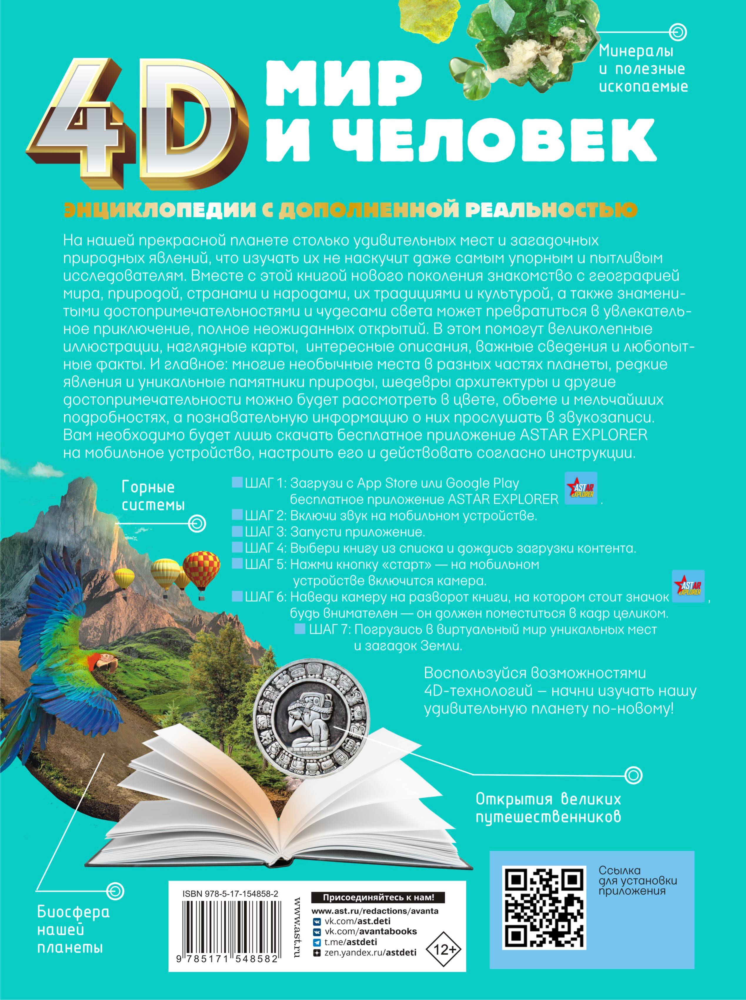 Ты держишь в руках уникальную книгу с дополненной реальностью, которая станет твоим спутником в путешествии по морям и океанам, материкам и островам, странам и городам Земли. На ее страницах можно встретить не только интересные повествования о нашей планете, но и иллюстрирующие их наглядные карты и красочные картинки. Ты узнаешь о реках и озерах, о горах и равнинах, о лесах и пустынях, познакомишься с жизнью людей в различных государствах, с их культурой, традициями и обычаями. Также в книге рассказано о чудесах природы, богатстве растительного и животного мира, достижениях человека в области науки, техники и архитектуры. Но главное: многие удивительные уголки нашей планеты, загадочные природные явления и величественные творения человеческих рук можно будет рассмотреть в цвете, объеме и мельчайших деталях, а также прослушать познавательную информацию о них. Для этого необходимо будет лишь скачать бесплатное приложение ASTAR EXPLORER на мобильное устройство, настроить его и действовать согласно инструкции. Для среднего и старшего школьного возраста.| Издательство | ИЗДАТЕЛЬСТВО "АСТ" |