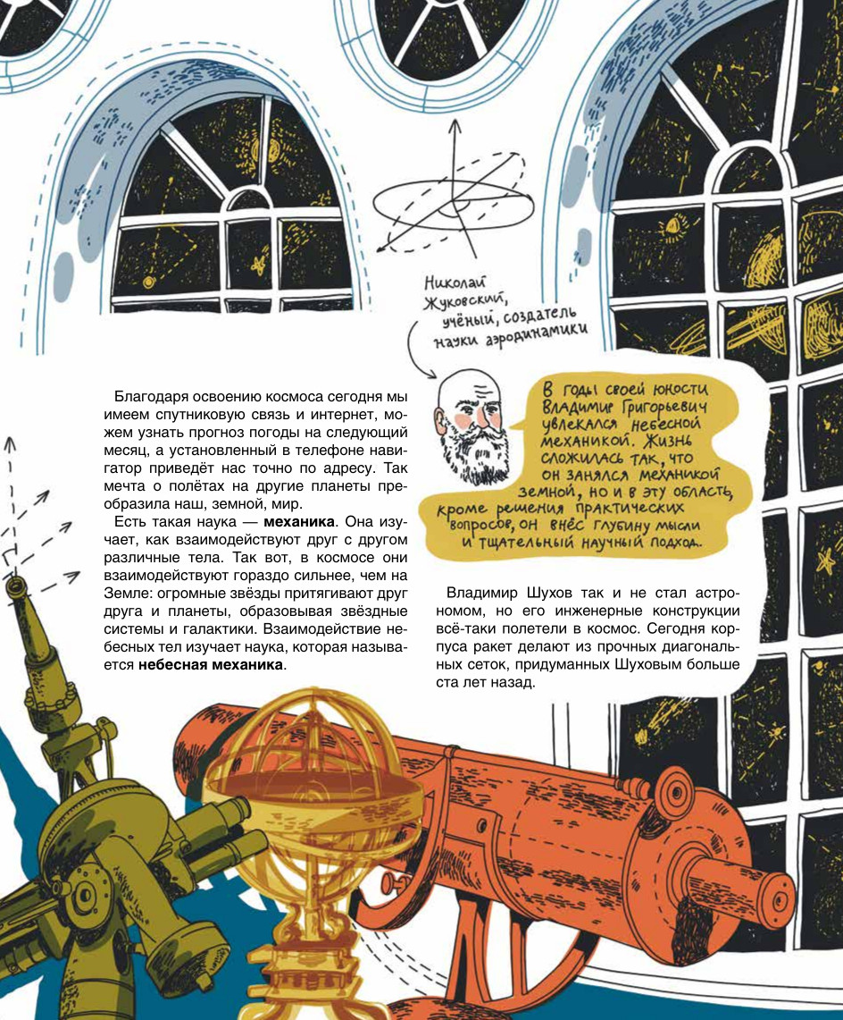 Посещение обсерватории оказало на маленького Владимира Шухова огромное впечатление. Он влюбился в таинственный мир звезд и планет и решил: когда он вырастет, станет астрономом! <...> Владимир Шухов так и не стал астрономом, но его инженерные конструкции все-таки полетели в космос. Сегодня корпуса ракет делают из прочных диагональных сеток, придуманных Шуховым больше ста лет назад.