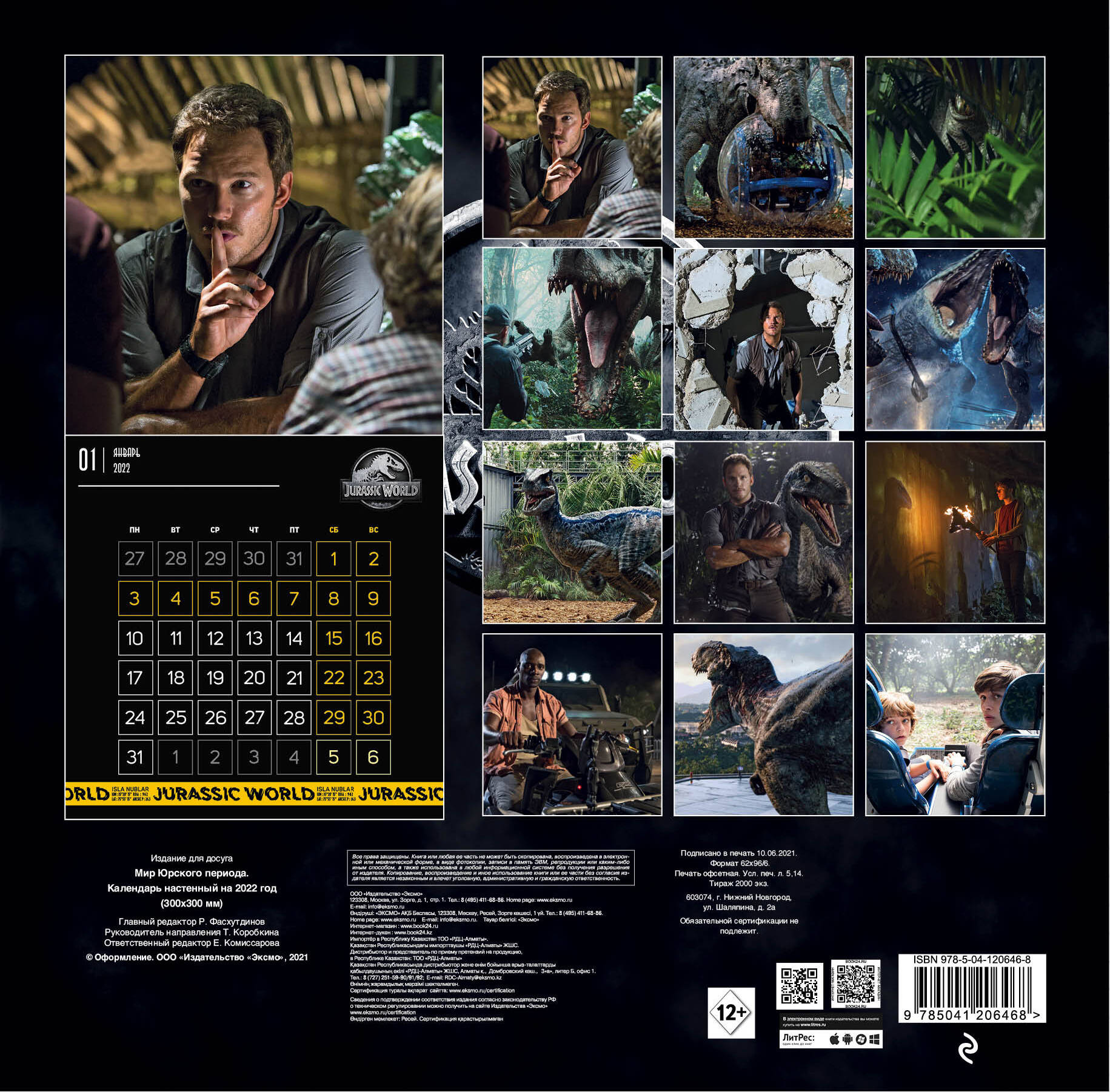 Аннотация: Мир Юрского периода (Jurassic World). Кадры из фильма. Календарь настенный на 2022 год