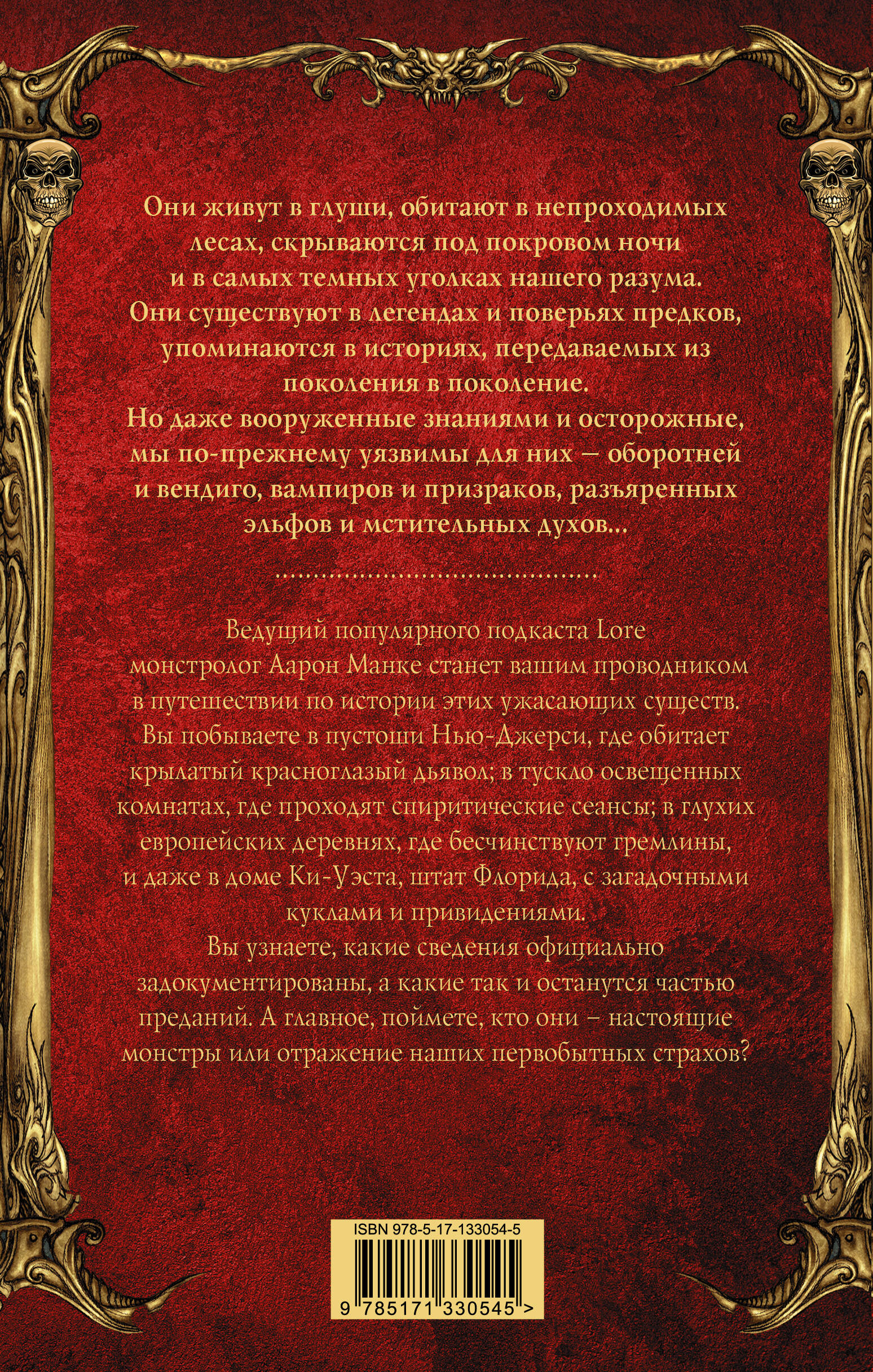 Они живут в глуши, обитают в непроходимых лесах, скрываются под покровом ночи и в самых темных уголках нашего разума. Они существуют в легендах и поверьях предков, упоминаются в историях, передаваемых из поколения в поколение. Но даже вооруженные знаниями и осторожные, мы по-прежнему уязвимы для них: оборотней и вендиго, вампиров и призраков, разъяренных эльфов и мстительных духов… Ведущий популярного подкаста Lore монстролог Аарон Манке станет вашим проводником в путешествии по истории этих ужасающих существ. Вы побываете в пустоши Нью-Джерси, где обитает крылатый красноглазый дьявол; в тускло освещенных комнатах, где проходят спиритические сеансы; глухих европейских деревнях, где бесчинствуют гремлины, и даже в доме Ки-Уэста, штат Флорида, с загадочными куклами и привидениями. Вы узнаете, какие сведения официально задокументированы, а какие так и останутся частью приданий. А главное, поймете, кто они - настоящие монстры или отражение наших первобытных страхов?| Издательство | ИЗДАТЕЛЬСТВО "АСТ" |