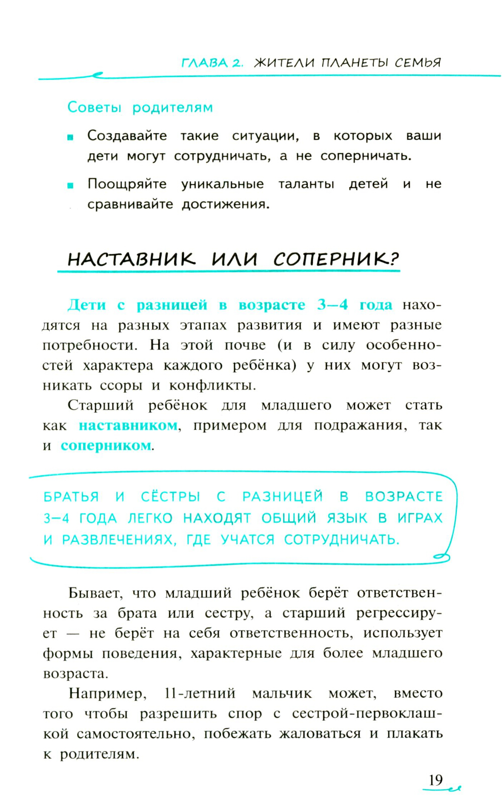 В книге рассмотрены основные трудности, с которыми сталкиваются родители братьев и сестёр: как помочь детям научиться общаться и играть друг с другом, не испытывая чувства ревности, решать конфликты мирно, находить общие интересы и ценить моменты, проведённые вместе. Книга подойдёт как для родителей, у которых больше одного ребёнка, так и для тех, кто только ждёт следующего ребёнка. Прислушиваясь к советам профессиональных психологов, вы поможете своим детям стать ближе, научиться уважать друг друга, а также создадите тёплые и доверительные отношения в семье.| Издательство | Просвещение |