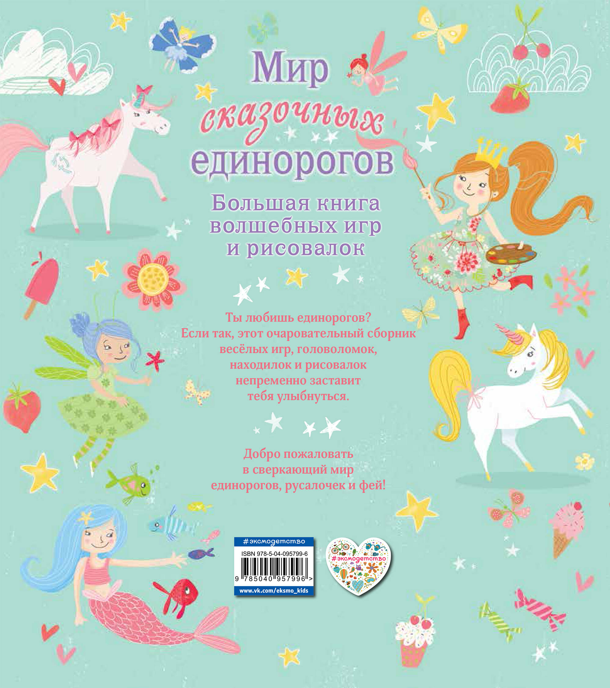 Воспользуйся шансом подружиться с настоящими единорогами! Приглашаем тебя совершить путешествие в сказочную страну, где ты сможешь вдоволь наиграться и показать себя феечкам, русалочкам и главным героям вечеринки - единорожкам. Все они уже ждут тебя - решай головоломки, проходи лабиринты, рисуй, составляй паззлы и оттягивайся на целую радугу и выше! В волшебном мире каждый день - праздник! Не трать время впустую, скорее открывай книжку - и за дело! Но помни, концентрация единорогов на одну страницу зашкаливает! Не утони в розовых облаках счастья где-то там, за далекой радугой, в стране шикарных грив и умопомрачительного рога!| Издательство | ООО "Издательство "Эксмо" |