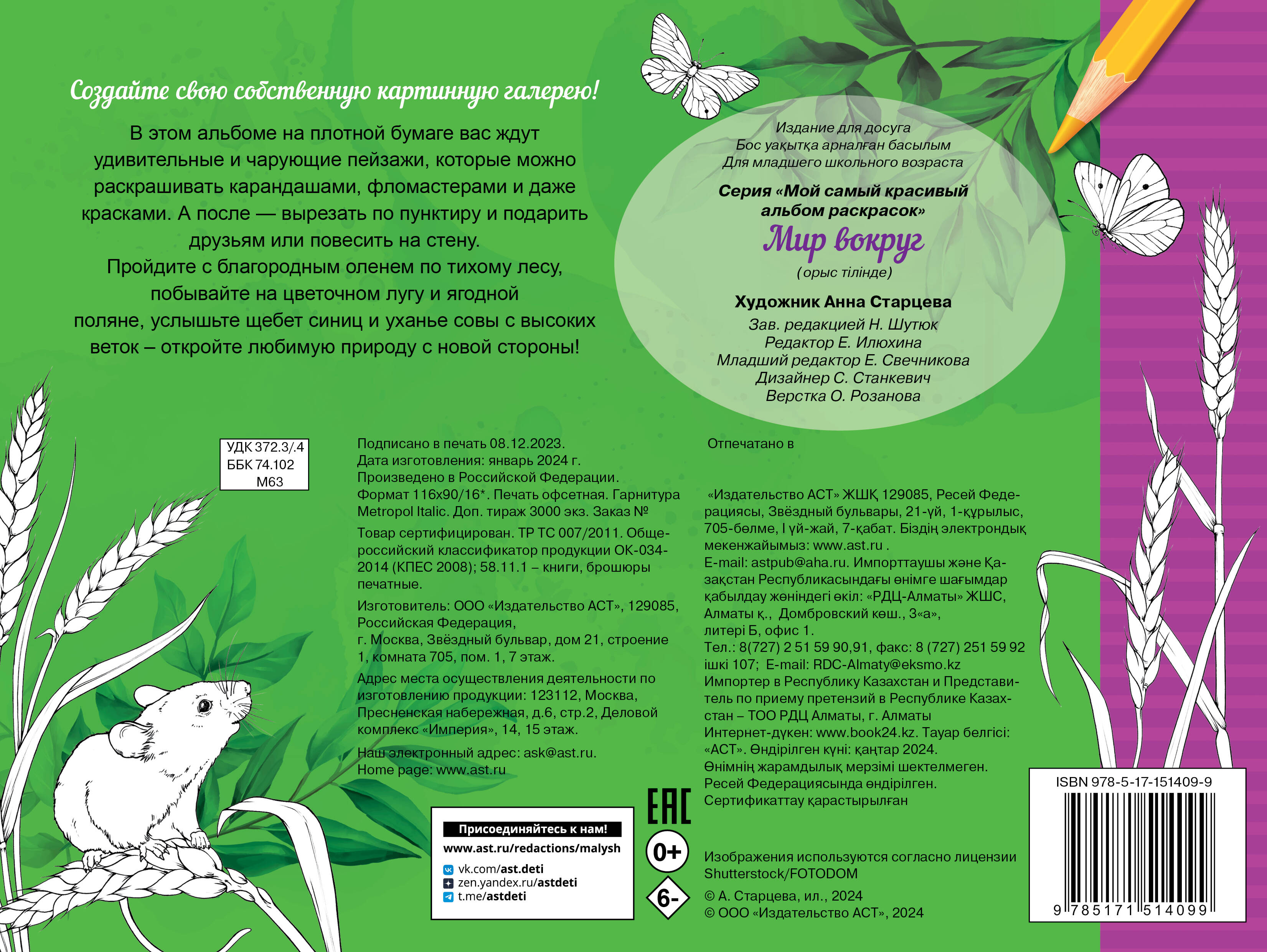 В этом альбоме на плотной бумаге вас ждут удивительные и чарующие пейзажи, которые можно раскрашивать карандашами, фломастерами и даже красками. А после - вырезать по пунктиру и подарить друзьям или повесить на стену. Пройдите с благородным оленем по тихому лесу, побывайте на цветочном лугу и ягодной поляне, услышьте щебет синиц и уханье совы с высоких веток - откройте любимую природу с новой стороны!| Издательство | ИЗДАТЕЛЬСТВО "АСТ" |