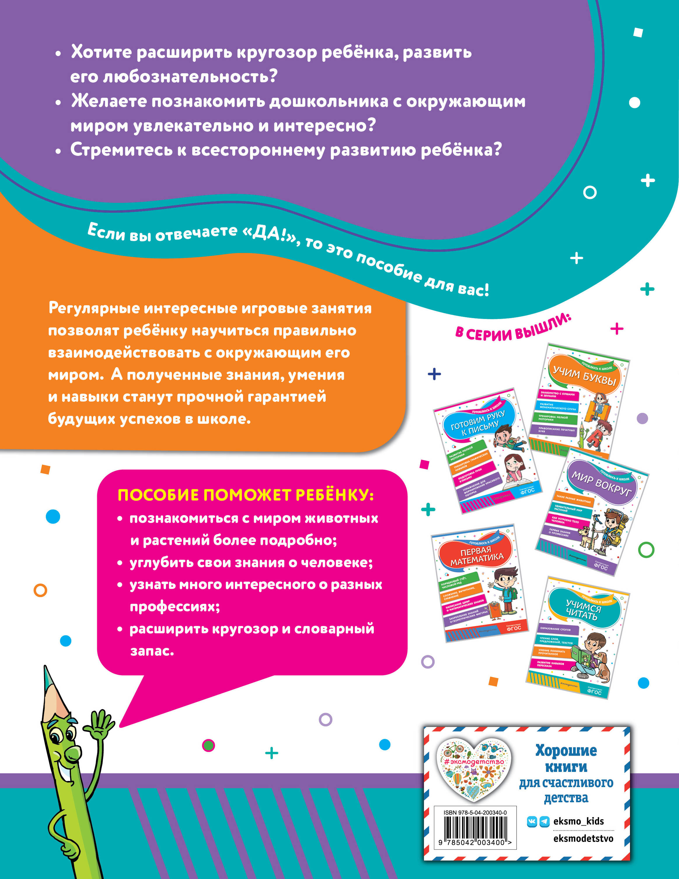 Подготовка к школе должна помочь ребёнку созреть интеллектуально для нового этапа жизни. А это заложит основу его дальнейшего роста. С помощью представленных в книге игровых заданий родители и педагоги смогут наиболее эффективно организовать развивающие занятия по подготовке ребёнка к будущему обучению. Благодаря пособию ребёнок познакомится с миром животных и растений, узнает интересные факты о нашей планете, космосе и технике, поймёт, как устроено тело человека, расширит кругозор, разовьёт внимание и память, мышление и связную речь. Кроме того, ребенок сможет стать более усидчивым, аккуратным, внимательным и организованным, а главное, уверенным в своих силах и положительно настроенным к обучению. Книга издательства «Эксмо» позволит ребёнку развить имеющиеся навыки и умения, а также реализовать заложенные в нём таланты.| Издательство | ООО "Издательство "Эксмо" |