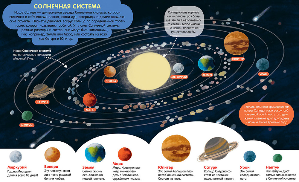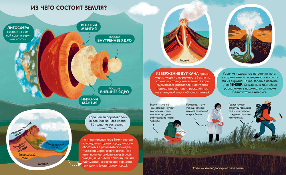 «Мир вокруг. Энциклопедия в картинках» ответит на самые популярные вопросы почемучек 4, 5, 6 лет про нашу планету, небо и землю, удивительные творения природы и человека. Рассматривая потрясающие иллюстрации популярного художника Леры Хаус и читая короткие увлекательные факты, ребенок узнает: - Какие облака несут дожди? - Что за след оставляют самолеты в небе? - Как мы используем нефть? - Из чего состоит земная кора? - Сколько созвездий на небе? Открывайте книгу и отправляйтесь в познавательное путешествие: взгляните в небо, рассмотрите облака и звезды, поднимитесь между Землей и космосом. В небе летают не только птицы, но и самолеты - узнайте, когда первый из них поднялся в воздух, побывайте в аэропорту и в кабине пилота. Под землей тоже немало интересного: норы и ходы, в которых живут удивительные животные, пещеры, стены которых хранят рисунки древних людей... А если взглянуть еще глубже, в самый центр Земли? Все тексты в книге короткие и понятные для детей, каждую тему сопровождают большие панорамные картинки, которые интересно рассматривать. А в конце ждут вопросы и задания для проверки новых знаний. «Мир вокруг. Энциклопедия в картинках» - это и увлекательное чтение, и изучение окружающего мира, и развитие эрудиции и интеллекта для дошкольников, а еще настоящий помощник для родителей, которые выбирают детям лучшую детскую прозу и научную литературу. Книга «Мир вокруг. Энциклопедия в картинках» станет отличным подарком для девочек и мальчиков, дочки или сына, внука или внучки, целой группы малышей в детский сад на день рождения и Новый год, а также полезным дополнением к праздничному набору или подарочному комплекту на любой праздник. - Познавательные факты + большие картинки - Подготовка к обучению в школе - Иллюстрации популярного художника Леры Хаус - Прекрасный подарок для дошкольника - Возраст 4-6 лет| Издательство | Клевер-Медиа-Групп |