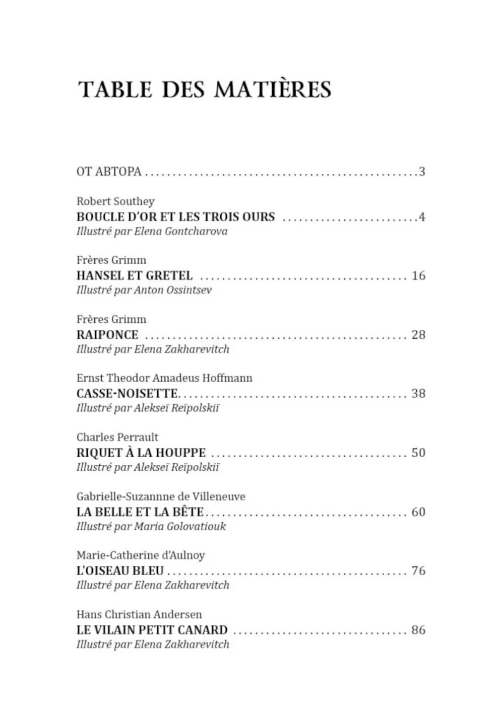 В сборник вошли всемирно известные сказки, иллюстрированные замечательными художниками. Занимательные задания и словари к текстам сказок помогут ученикам с легкостью усвоить новую лексику, с интересом познавать увлекательный мир героев и полюбить язык, на котором они говорят. Сказки адаптированы Анной Игоревной Иванченко, автором популярных учебников и пособий по французскому языку. В помощь ученикам подготовлены словари к сказкам и ключи к упражнениям. Книга предназначена для детей среднего школьного возраста, имеющих уровень владения языком B1-B2. Предполагается совместная деятельность ребенка и взрослого.
