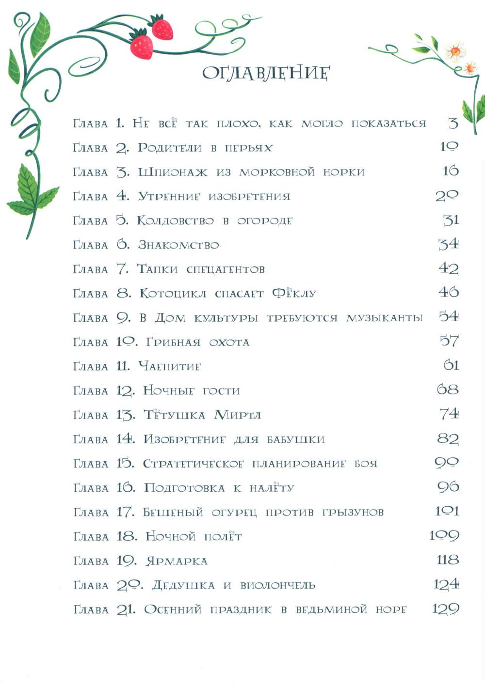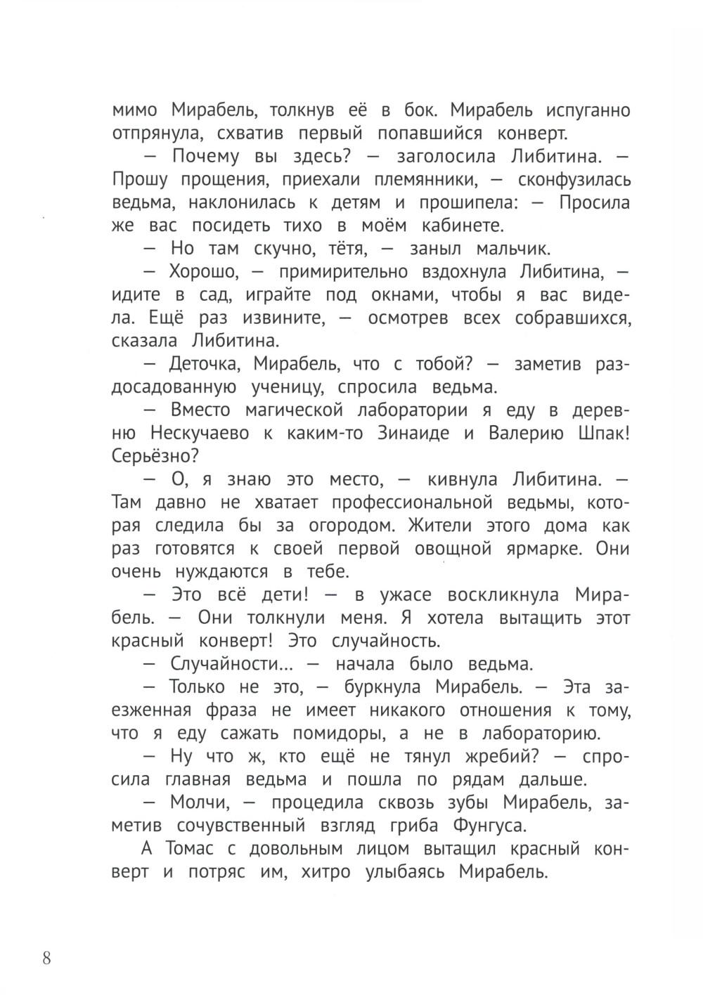Юная ведьма Мирабель - лучшая ученица академии, она мечтает попасть в главную магическую лабораторию по выведению новых видов растений. Однако её мечте не суждено сбыться: по распределению Мирабель отправляется в деревню Нескучаево к Зинаиде и Валерию Шпак помогать с подготовкой урожая к овощной ярмарке. Мирабель предстоит познакомиться с их внуками-изобретателями, спасти урожай от атаки грызунов и помочь семейству принять участие в ярмарке.| Издательство | Феникс |