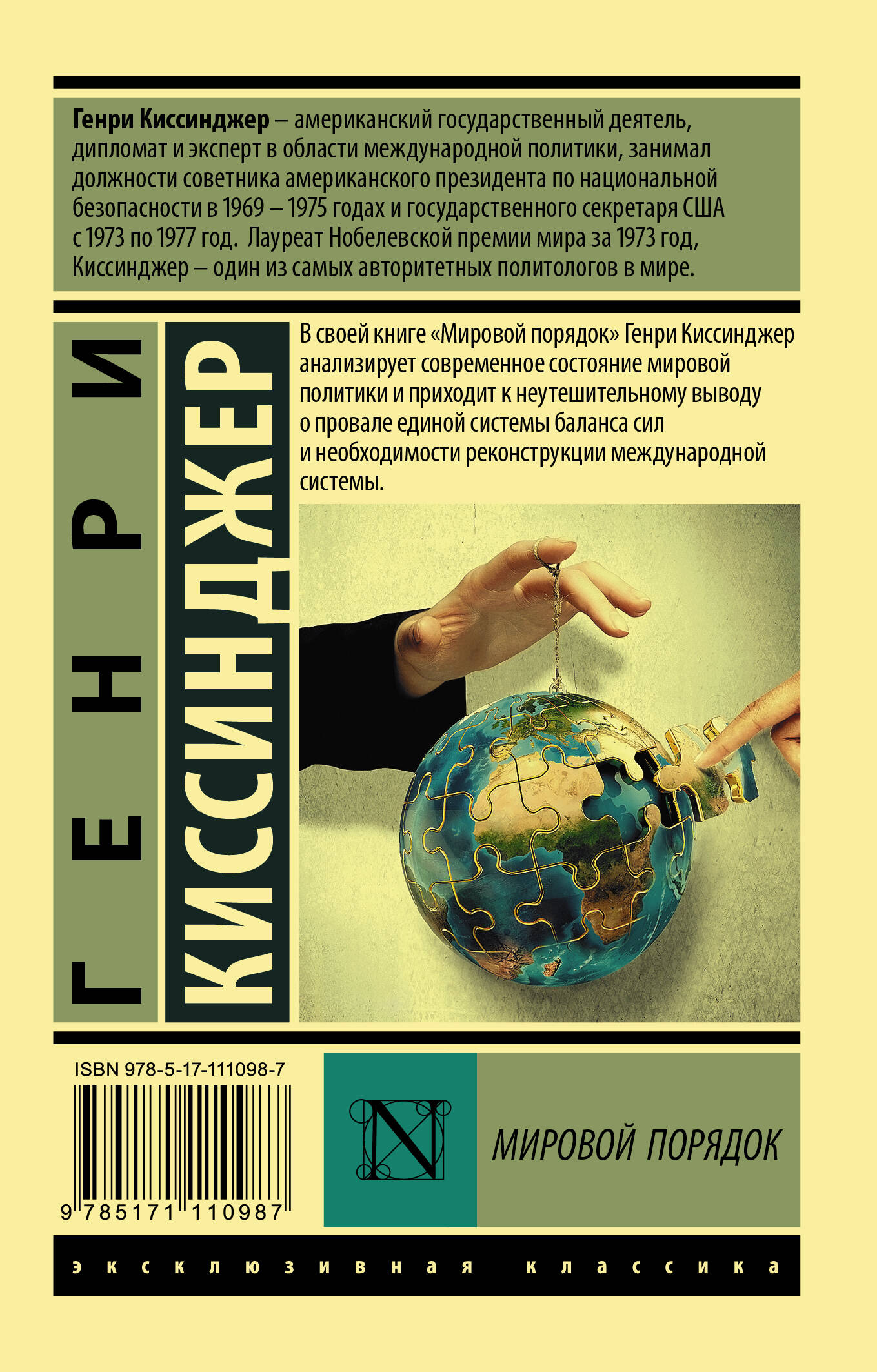 В своей книге "Мировой порядок" Генри Киссинджер анализирует современное состояние мировой политики и приходит к неутешительному выводу о провале единой системы баланса сил и необходимости реконструкции международной системы.| Издательство | ИЗДАТЕЛЬСТВО "АСТ" |