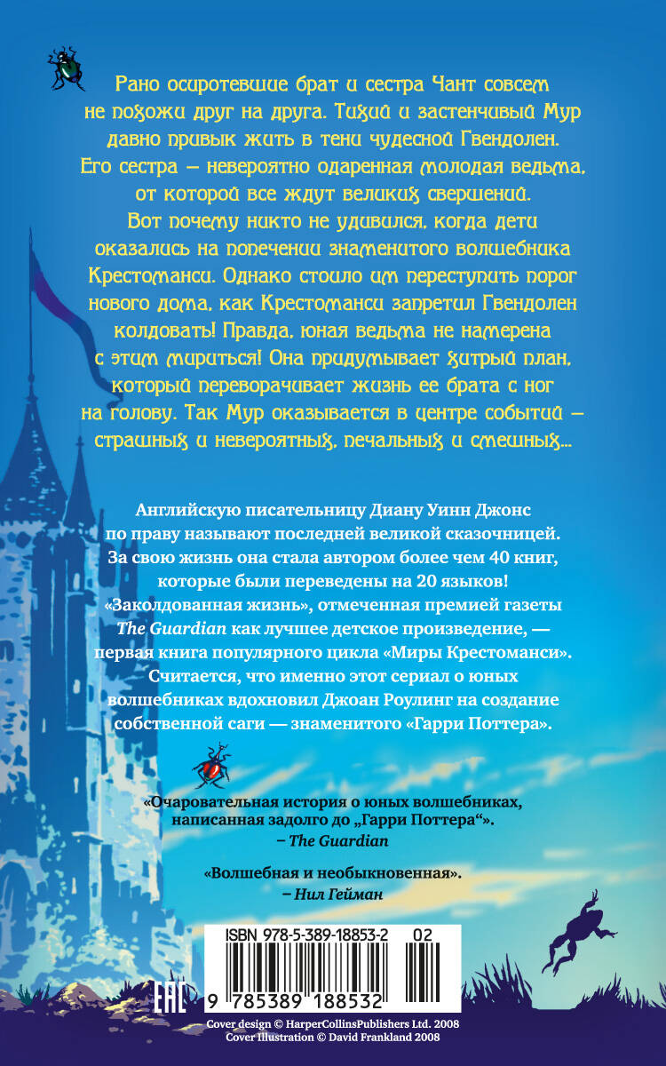 Английская писательница Диана Уинн Джонс считается последней великой сказочницей. По ее бестселлеру "Ходячий замок" знаменитый мультипликатор Хаяо Миядзаки снял одноименный анимационный фильм. Каждый из созданных ею миров удивителен и неповторим! Рано осиротевшие брат и сестра Чант совсем не похожи друг на друга. Тихий и застенчивый Мур давно привык жить в тени чудесной Гвендолен. Его сестра - невероятно одаренная молодая ведьма, от которой все ждут великих свершений. Вот почему никто не удивился, когда дети оказались на попечении знаменитого волшебника Крестоманси. Однако стоило им переступить порог нового дома, как Крестоманси запретил Гвендолен колдовать! Правда, юная ведьма не намерена с этим мириться! Она придумывает хитрый план, который переворачивает жизнь ее брата с ног на голову. Так Мур оказывается в центре событий - страшных и невероятных, печальных и смешных...